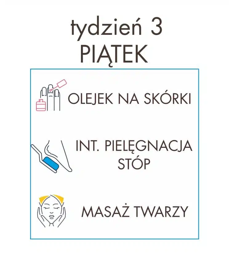 Akcja pielęgnacyjna – dzień 19 – piątek Piątek – weekendu początek! Wykorzystaj dzisiejszy dzień na relaks po ciężkim tygodniu – czy może być coś bardziej relaksującego niż masaż? Oczywiście, że nie! Dlatego dzisiejszym zadaniem jest wykonanie masażu twarzy – nie tylko pomoże Wam się odprężyć ale również pobudzi skórę do odbudowy, przez co stanie się bardziej jędrna, gładka […]