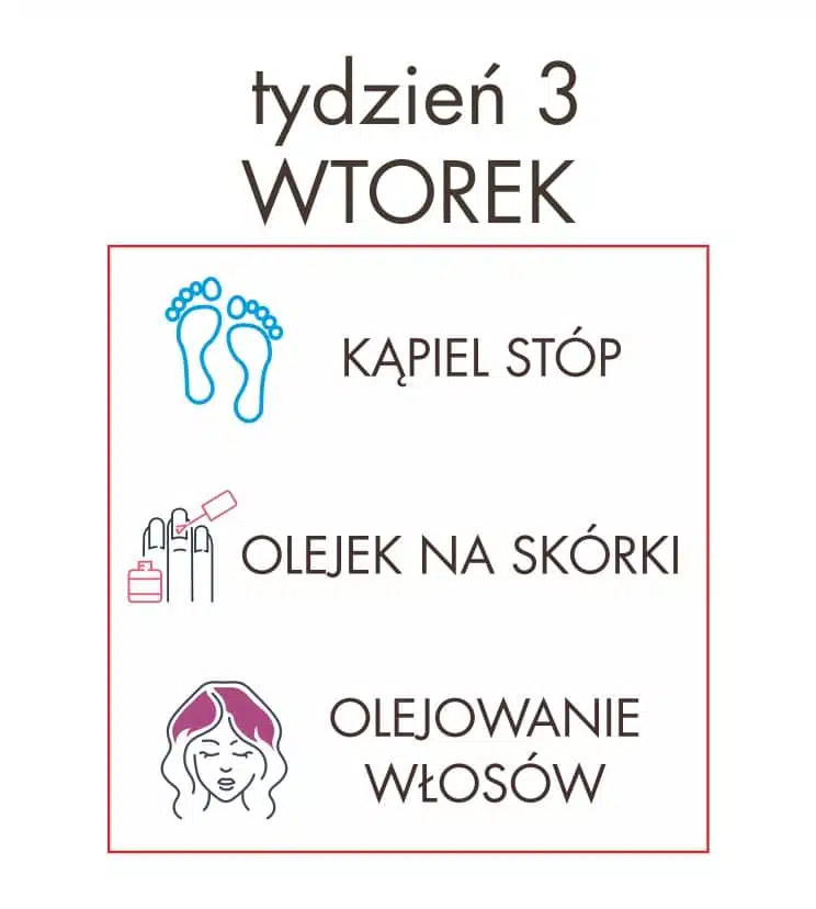 Akcja pielęgnacyjna – dzień 16 – wtorek Gotowe na kolejny dzień Wyzwania Pielęgnacyjnego? Ponieważ wczorajszy dzień był bardziej angażujący pod względem pielęgnacyjnym niż zazwyczaj, dziś troszkę zwolnimy tempa – znajdźcie czas na chwilę błogiego relaksu i… … najpierw wykonajcie zabieg olejowania włosów: nie jest to ani trudny ani czasochłonny zabieg chociaż dla osób początkujących może się takim […]
