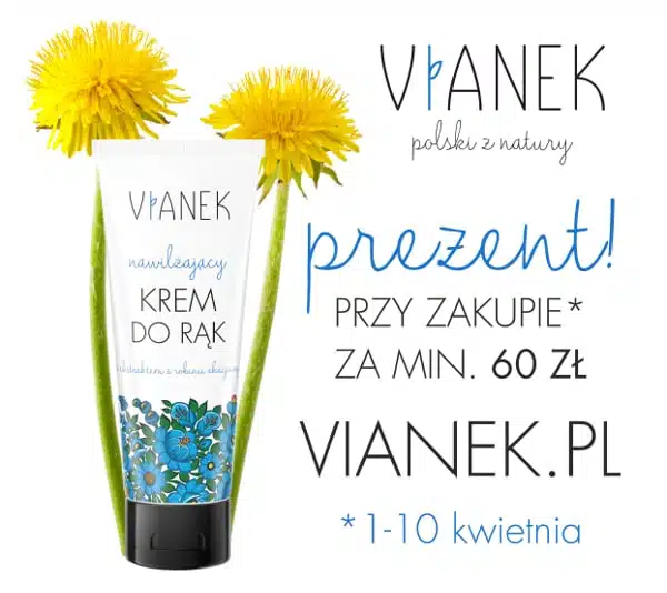Kwietniowe szaleństwo zakupów 🙂 W ramach akcji „Szaleństwo zakupów” udostępniamy promocję w naszym sklepie internetowym www.vianek.pl 🙂 W dniach 1-10 kwietnia przy zamówieniu o wartości min. 60 zł dodajemy prezent: Nawilżający krem do rąk z ekstraktem z robinii akacjowej. Zapraszamy do skorzystania z promocji!