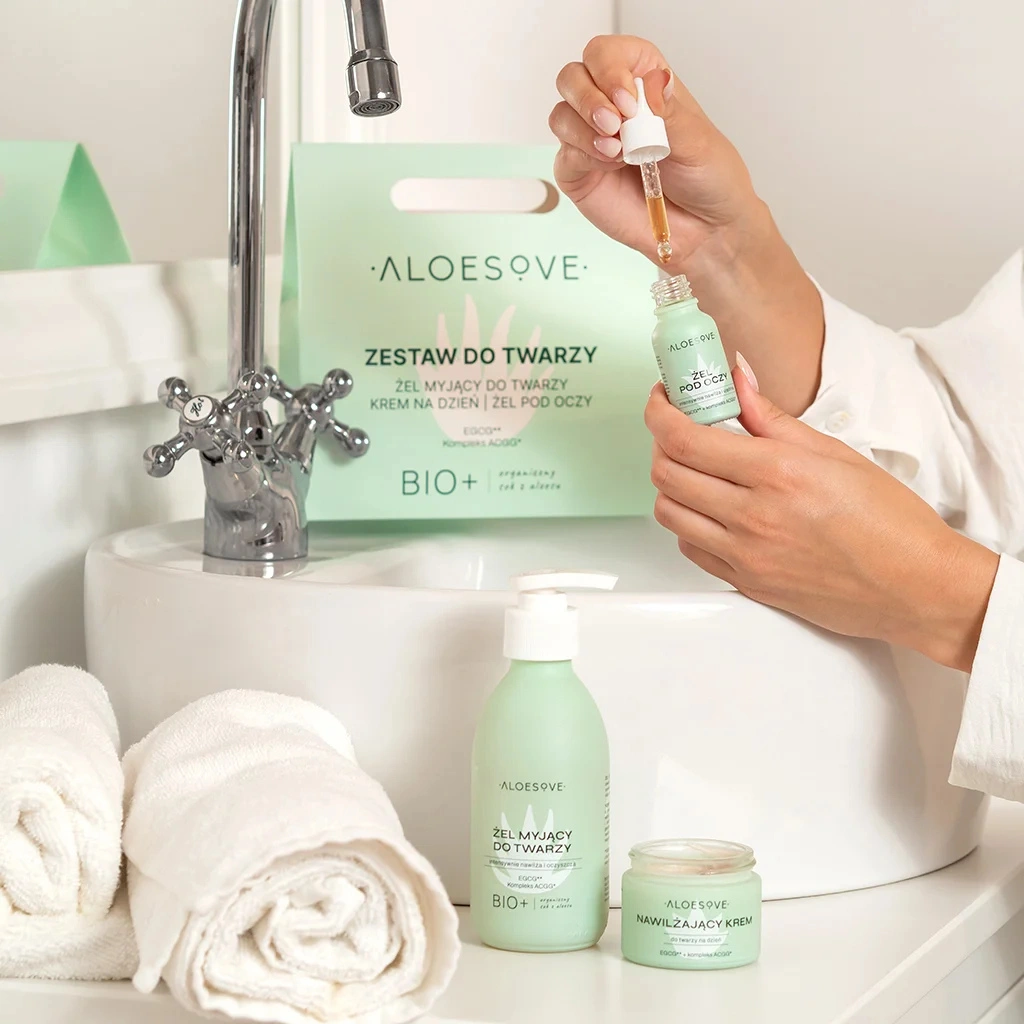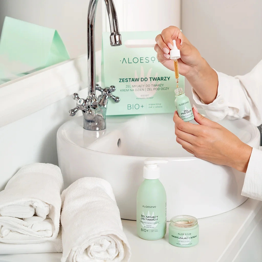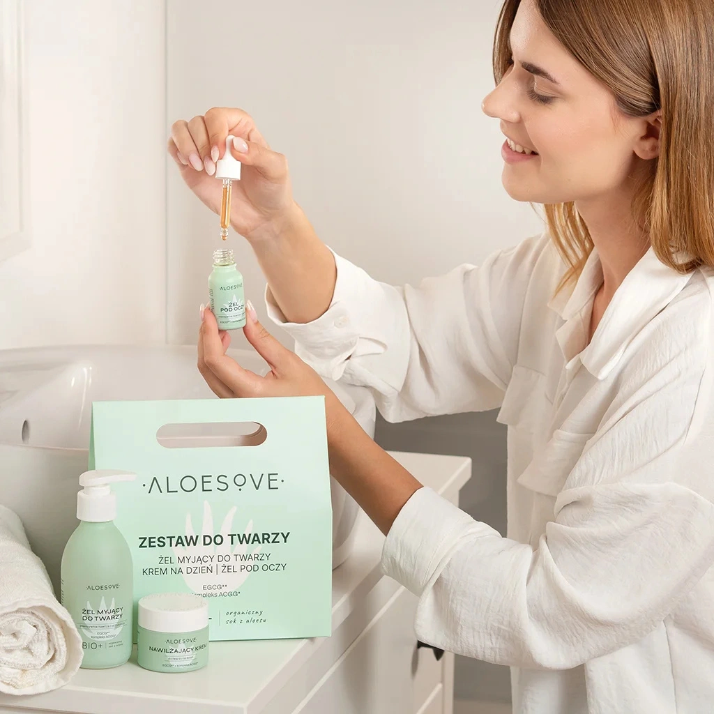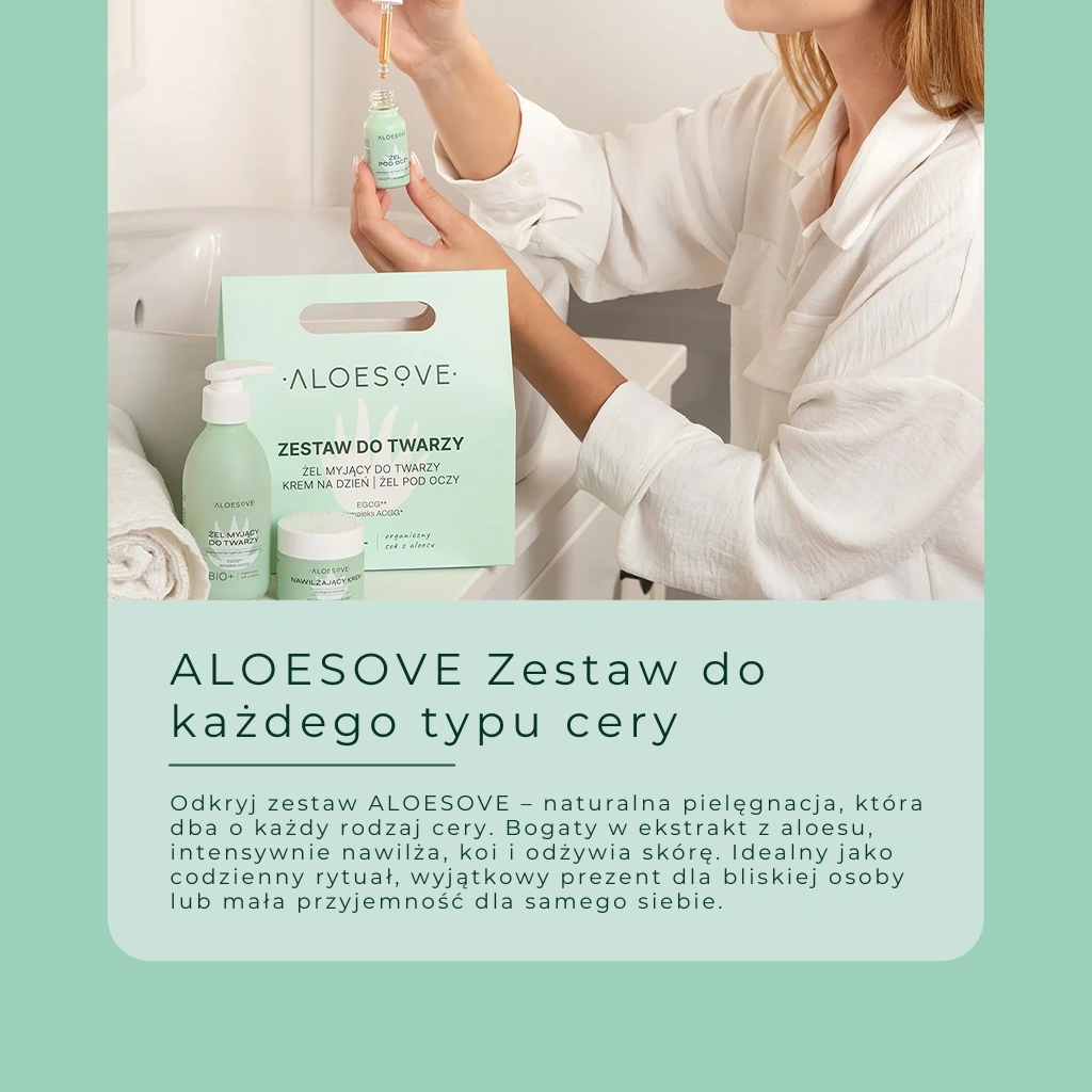 Zestaw ALOESOVE tworzy pełen rytuał pielęgnacyjny. Żel myjący oczyszcza skórę i przygotowuje ją na kolejne etapy pielęgnacji, krem na dzień zapewnia długotrwałe nawilżenie i ochronę przed czynnikami zewnętrznymi, a żel pod oczy redukuje oznaki zmęczenia i przywraca spojrzeniu świeżość. Produkty działają w synergii, dbając zarówno o komfort, jak i zdrowy wygląd skóry.