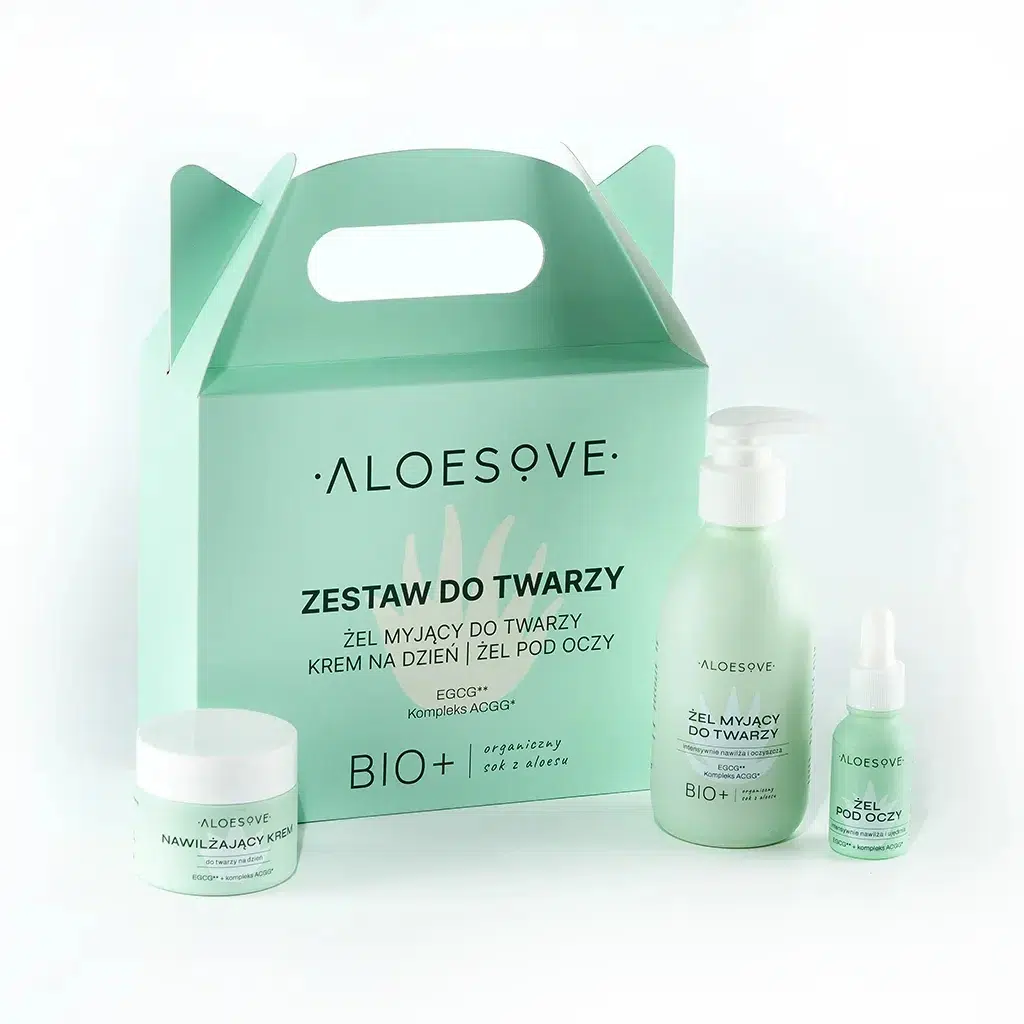 Zestaw ALOESOVE tworzy pełen rytuał pielęgnacyjny. Żel myjący oczyszcza skórę i przygotowuje ją na kolejne etapy pielęgnacji, krem na dzień zapewnia długotrwałe nawilżenie i ochronę przed czynnikami zewnętrznymi, a żel pod oczy redukuje oznaki zmęczenia i przywraca spojrzeniu świeżość. Produkty działają w synergii, dbając zarówno o komfort, jak i zdrowy wygląd skóry.