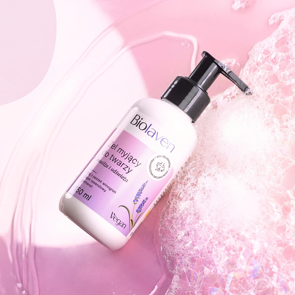 Oczyszczanie to podstawa codziennej pielęgnacji twarzy. Żel do mycia twarzy BIOLAVEN przeznaczony jest do codziennej pielęgnacji każdego typu cery. Zapewnia delikatne oczyszczenie oraz efektywne nawilżenie.
