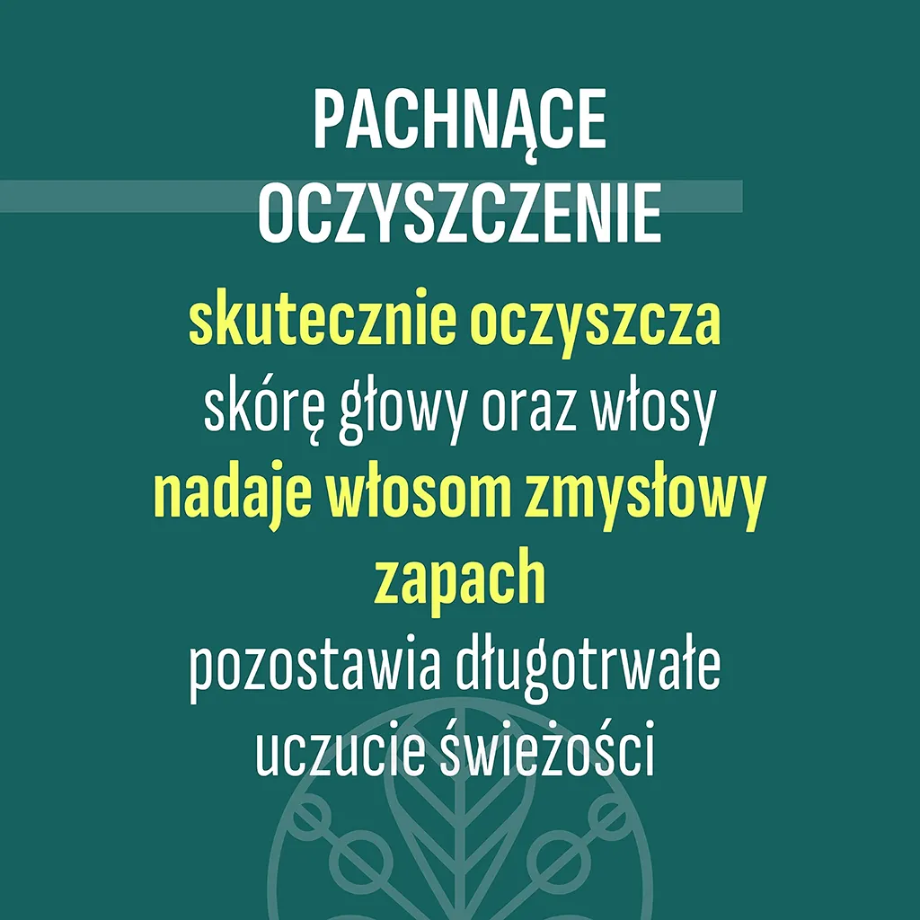 Formuła szamponu opiera się na łagodnych, ale skutecznych środkach myjących, które dokładnie oczyszczają skórę głowy, nie przesuszając jej. Delikatna formuła wspiera naturalną równowagę skóry głowy i włosów, dostarczając siły i energii czerpanej prosto z natury.