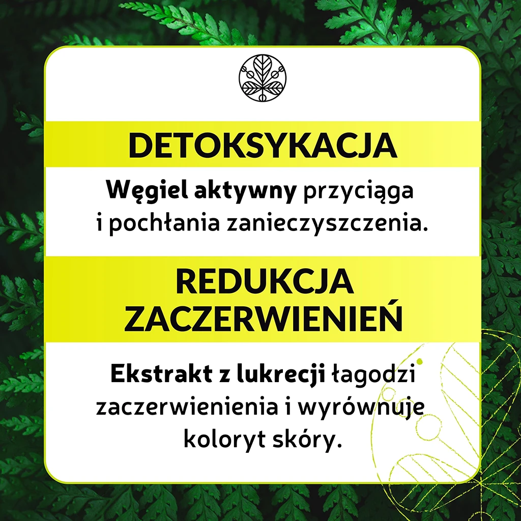 | Skład INCI | Activated Charcoal, Alumina, Aqua, Benzyl Alcohol, Caprylic/Capric Triglyceride, Cetyl Alcohol, Citrus Aurantium Bergamia Fruit Oil, Dehydroacetic Acid, Glyceryl Stearate, Glycyrrhiza Glabra (Licorice) Root Extract, Limonene, Linalool, Nigella Sativa (Black Seed) Seed Oil, Nigella Sativa (Black Seed) Seeds Powder, Panthenol, Sodium Benzoate, Sorbitan Stearate, Stearic Acid, Sucrose Cocoate, Thymus Vulgaris (Thyme) Oil, Tocopheryl Acetate, Vitis Vinifera Seed Oil, Xanthan Gum |
