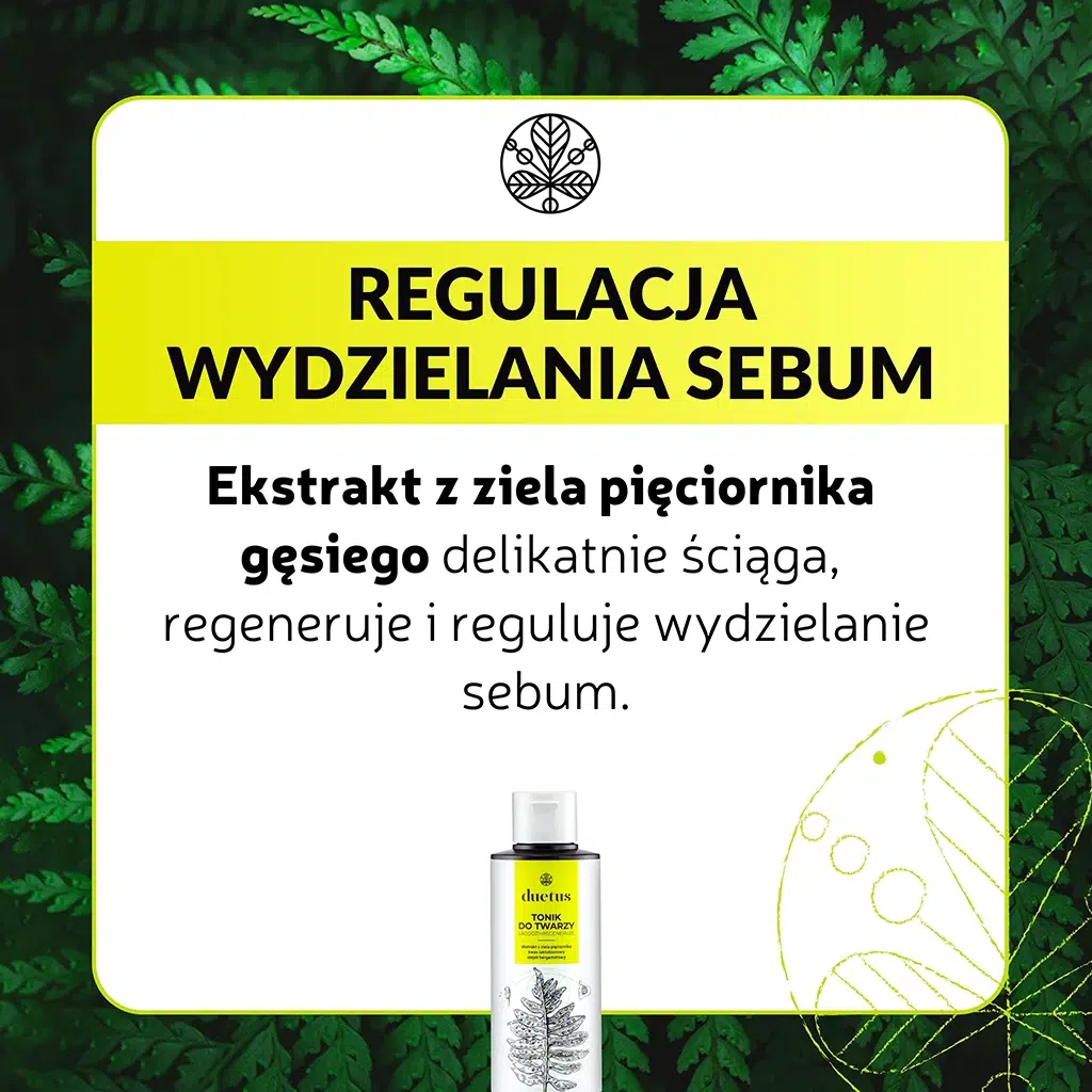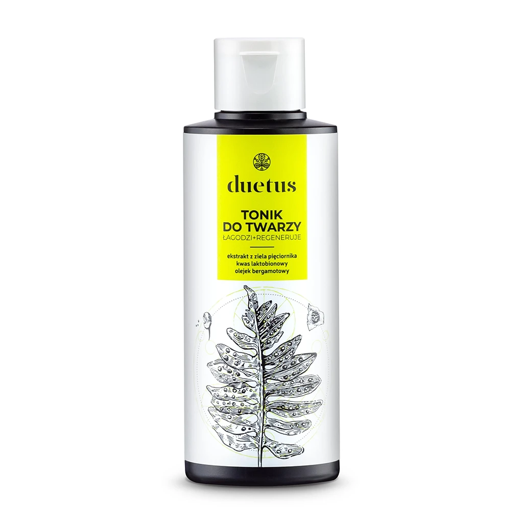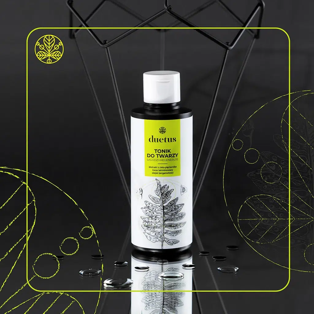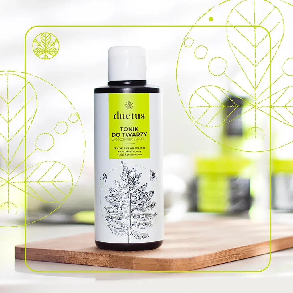 DUETUS Tonik do twarzy to doskonały wybór dla osób o cerze mieszanej, tłustej, trądzikowej, zanieczyszczonej i wrażliwej. Pomaga on przywrócić właściwe pH po oczyszczeniu i utrzymać naturalną równowagę skóry. Dodatkowo, tonik przygotowuje skórę do kolejnych etapów pielęgnacji, poprawiając wchłanianie aktywnych składników zawartych w kolejnych produktach.