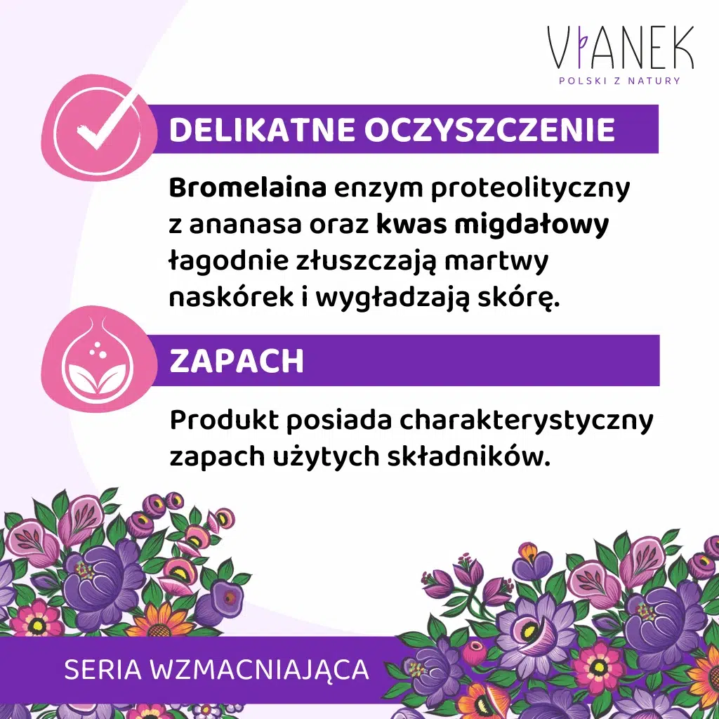 | Skład INCI | Aqua, Bromelain, Chamomilla Recutita Flower Oil, Coco-glucoside, Glycerin, Mandelic Acid, Panthenol, Parfum, Propanediol, Ribes Nigrum Seed Extract, Sodium Benzoate, Xanthan Gum |