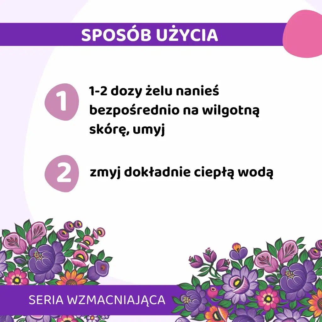 | Sposób użycia | 1-2 dozy żelu nanieś bezpośrednio na wilgotną skórę, omijając okolice oczu, umyj, następnie zmyj dokładnie ciepłą wodą. |
