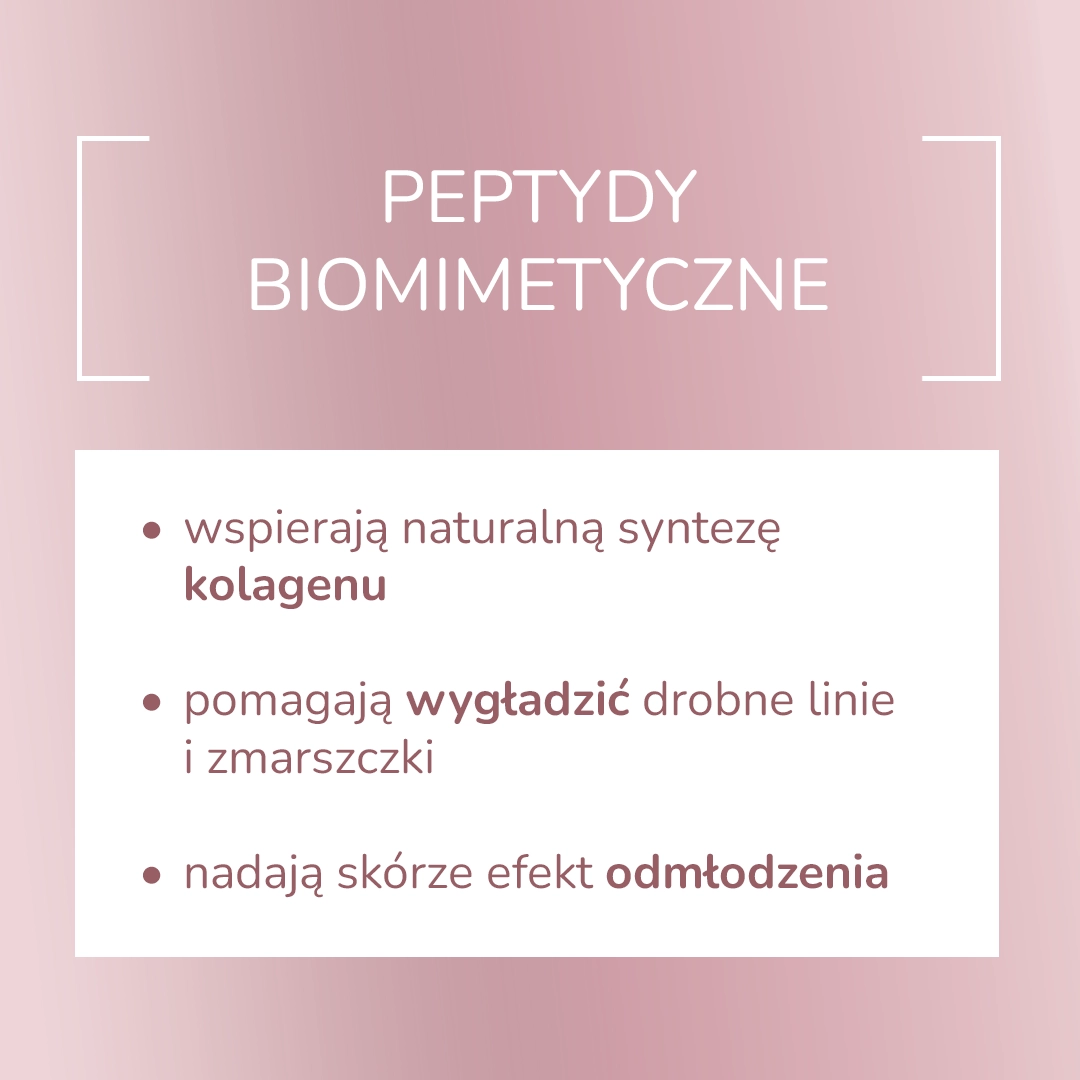Doświadcz pielęgnacji nowej generacji, która łączy moc peptydów biomimetycznych z dobrodziejstwem naturalnych składników. Filtrat ze śluzu ślimaka regeneruje i wspiera procesy odnowy komórkowej, a oleje roślinne odżywiają i chronią skórę przed przesuszeniem. Dzięki obecności skwalanu i pantenolu serum zapewnia długotrwałe nawilżenie i poprawia elastyczność cery. Lekka konsystencja sprawia, że produkt idealnie sprawdza się pod krem, nie pozostawiając uczucia obciążenia. To codzienna dawka luksusu, energii i odżywienia