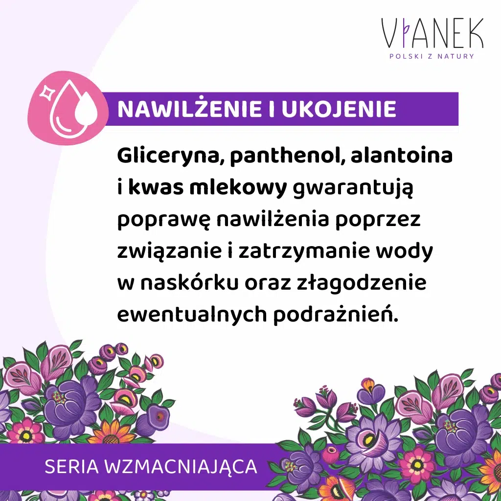 | Działanie | Intensywnie nawilża, Łagodzi podrażnienia |