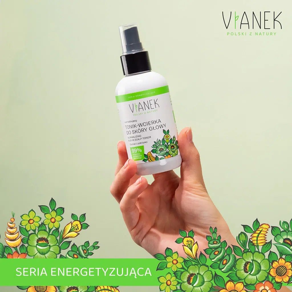 Normalizujący tonik-wcierka do skóry głowy to jeden z najpopularniejszych produktów marki Vianek, dedykowany dla kobiet, jak i mężczyzn. Naturalne składnik zawarte w produkcie stymulują porost włosów, a także ograniczając ich wypadanie i przetłuszczanie. Dodatkowo regularne stosowanie przywraca równowagę skóry naszej głowy.