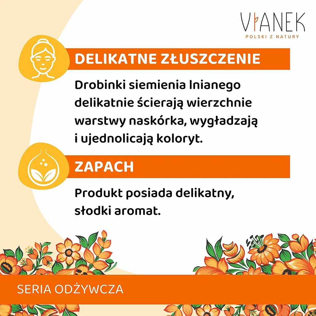 Produkt, który łączy mechaniczny peeling (zmielone siemię) z maseczką (olejki).