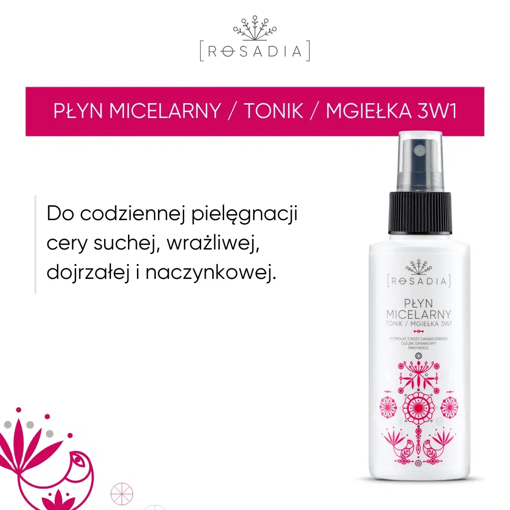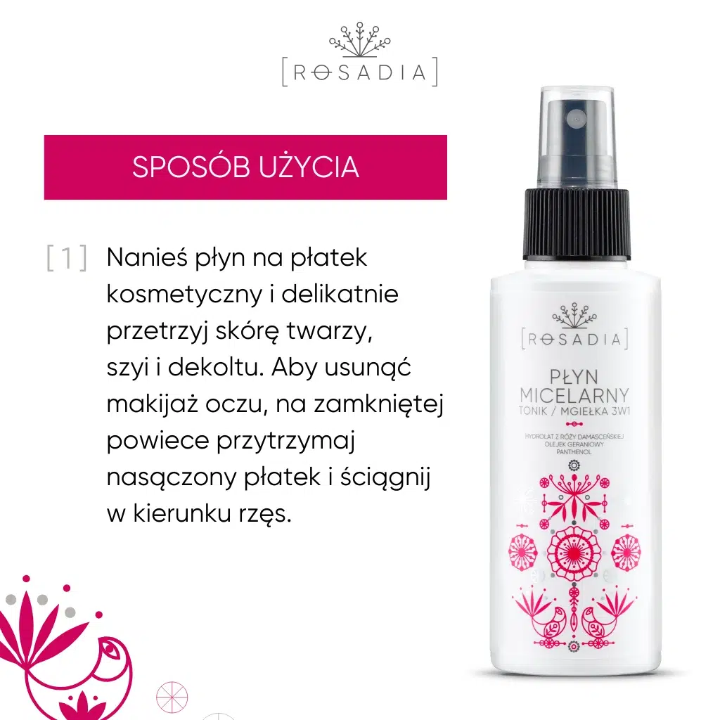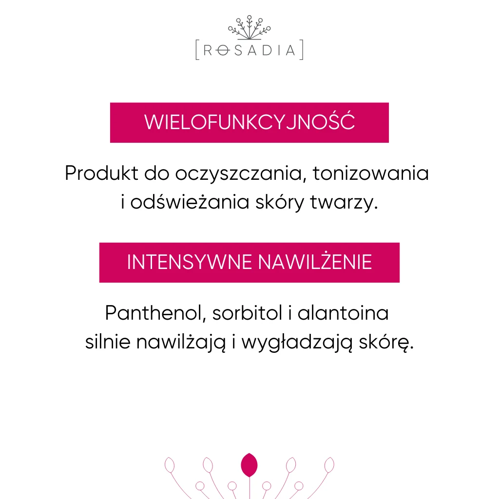 Uniwersalny produkt do oczyszczania i tonizowania delikatnej, mieszanej, dojrzałej oraz naczynkowej cery. Opracowany na bazie hydrolatu z róży damasceńskiej, który posiada właściwości przeciwstarzeniowe i antyoksydacyjne i poprawia elastyczność skóry. Dodatek kwasu mlekowego pomaga w wyrównaniu kolorytu i struktury skóry, redukując drobne zmarszczki mimiczne. Po użyciu tego preparatu skóra zachowuje wyraźne odczucie komfortu, czystości i świeżości.
