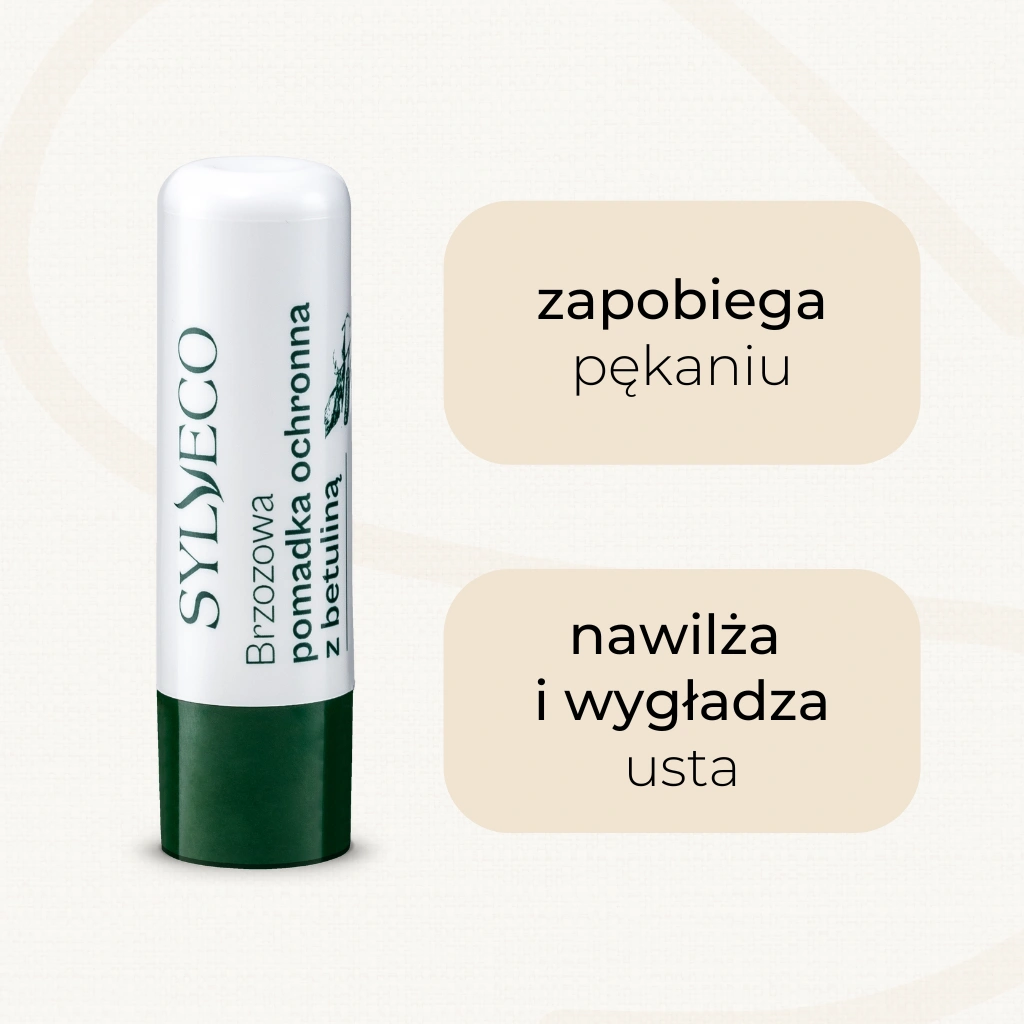 Brzozowa pomadka ochronna z betuliną zawiera tylko naturalne składniki. Masło Shea (karite) i masło kakaowe wygładzają i uelastyczniają usta, natomiast olej sojowy, jojoba i wiesiołkowy nawilżają je oraz zapobiegają ich wysychaniu i pękaniu. Pomadka stanowi doskonałą barierę ochronną przed mrozem, wiatrem i promieniami słonecznymi. Aktywny składnik - betulina - działa kojąco i regenerująco na wszelkie podrażnienia.