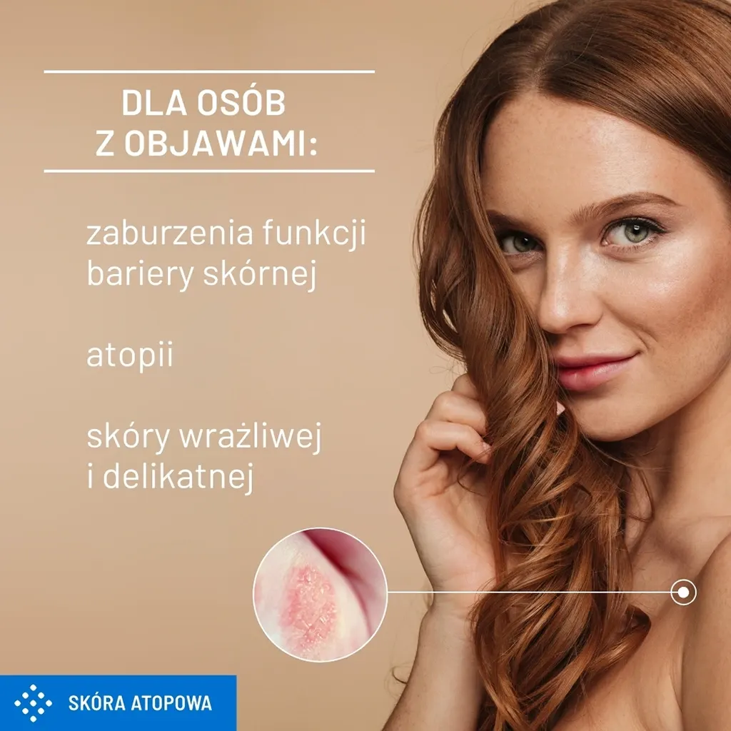 | Problem skórny | delikatna, Skóra atopowa, Skóra odwodniona, Skóra wrażliwa, Zaburzona bariera hydrolipidowa |