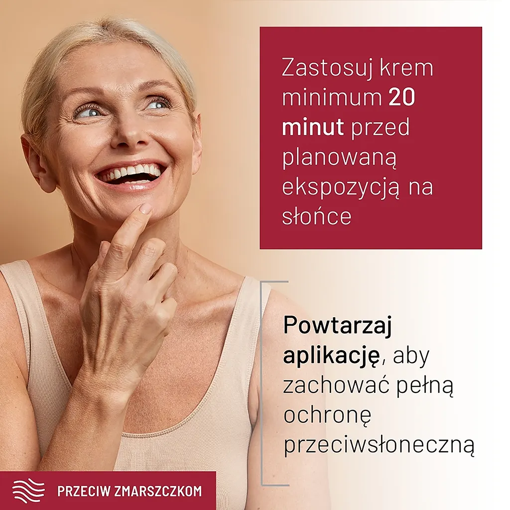 Zaawansowany krem przeciwzmarszczkowy, przeznaczony dla osób z widocznymi efektami starzenia, takimi jak zmarszczki mimiczne, utrata jędrności i gęstości skóry. Dzięki innowacyjnej formule, skutecznie niweluje widoczne oznaki starzenia, przywracając skórze młodzieńczy wygląd. Regularne stosowanie kremu poprawia strukturę i elastyczność skóry, zapewniając jej gładkość i promienny blask.