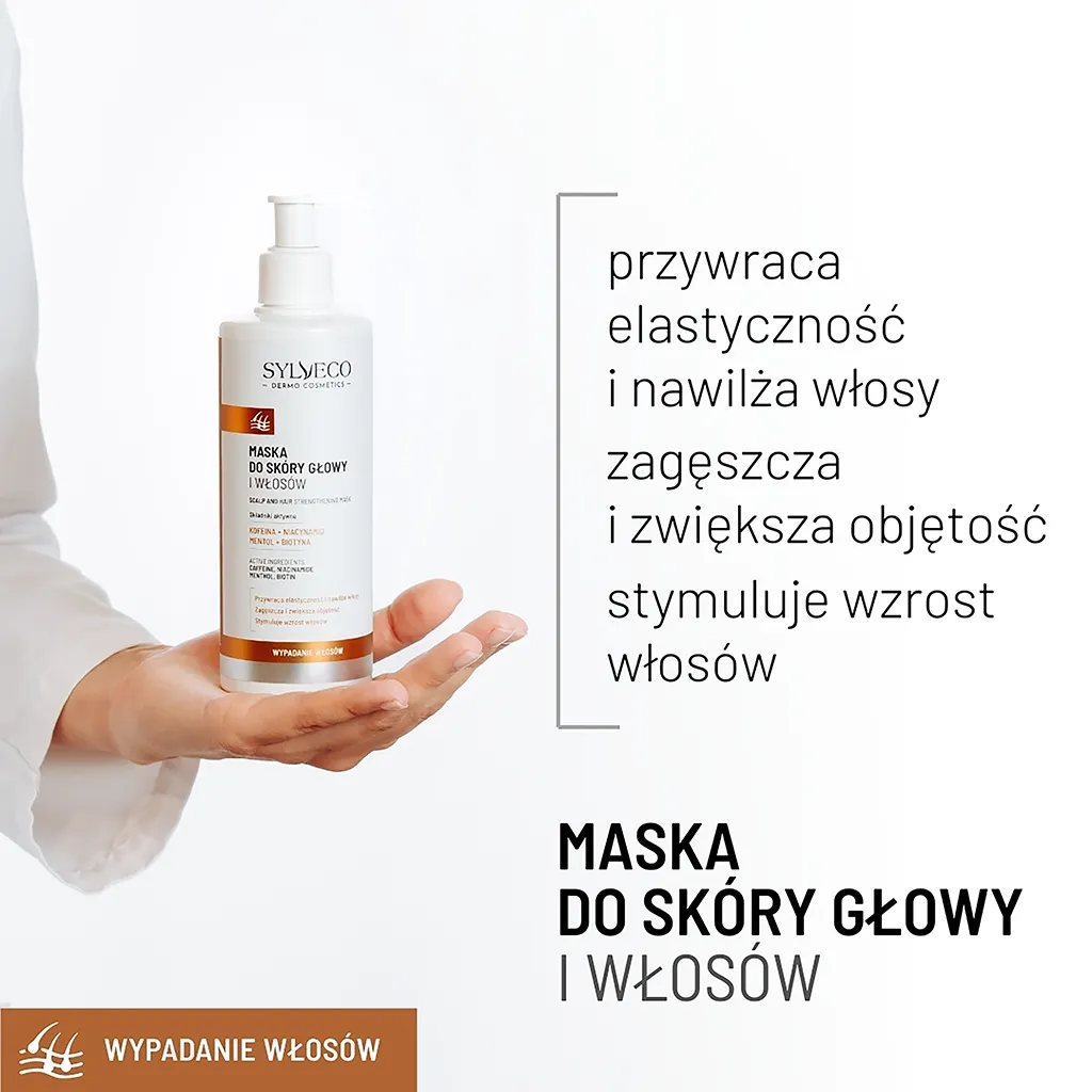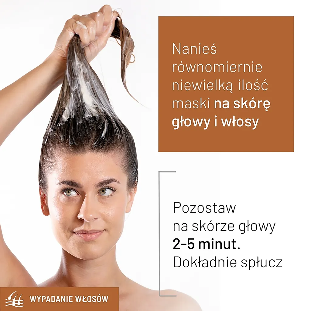 Specjalistyczna maska do włosów i skóry głowy przeznaczona dla osób zmagających się z problemem wypadania włosów oraz przedwczesnym łysieniem. Produkt posiada kompozycję zapachową bez alergenów, co sprawia, że jego używanie jest komfortowe nawet dla osób o wrażliwej skórze głowy.