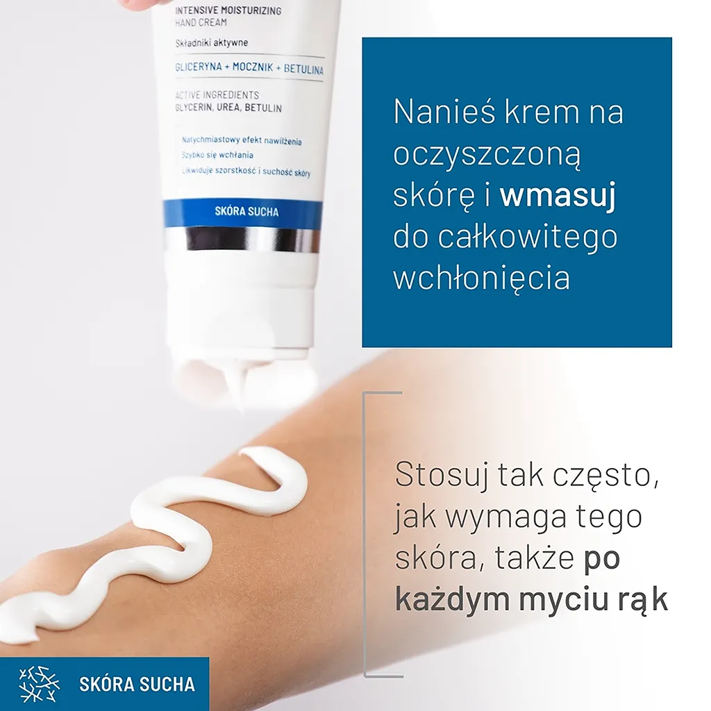 Intensywnie nawilżający krem do rąk został stworzony specjalnie dla osób z ekstremalnie suchą, odwodnioną, wrażliwą i delikatną skórą dłoni, która potrzebuje regeneracji i wzmocnienia bariery hydrolipidowej. To idealne rozwiązanie do pielęgnacji popękanych, szorstkich, spierzchniętych dłoni.
