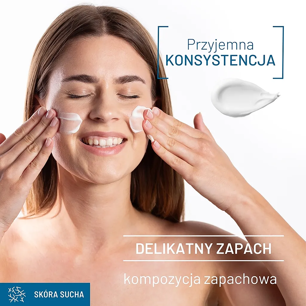Nawilżający krem do twarzy do codzennej pielęgnacji cery suchej, odwodnionej, z zaburzoną barierą hydrolipidową. Intensywnie i długotrwale nawilża, zmiękcza skórę, chroni przed odwodnieniem i wzmacnia naturalną barierę ochronną.