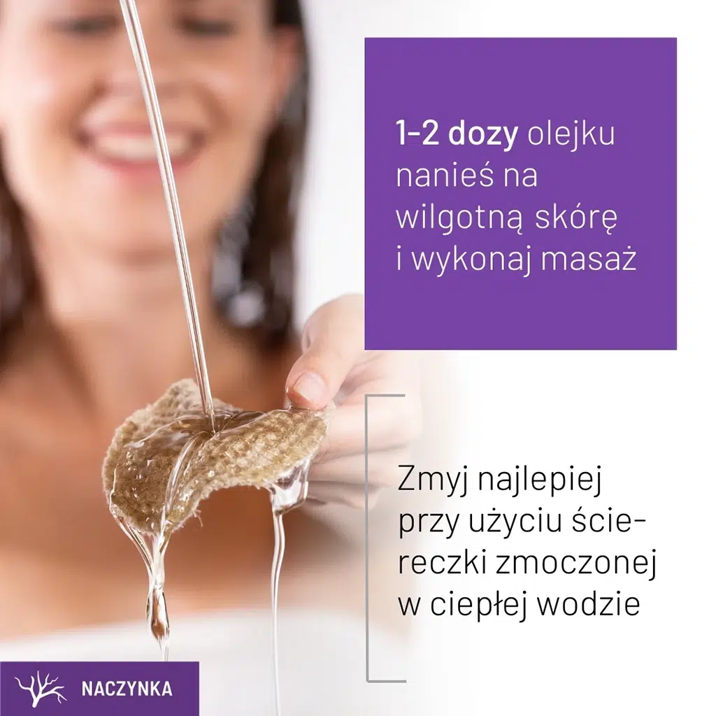 Sposób użycia | 1-2 dozy olejku nanieś na wilgotną skórę i wykonaj masaż. Zmyj najlepiej przy użyciu ściereczki zmoczonej w ciepłej wodzie. |