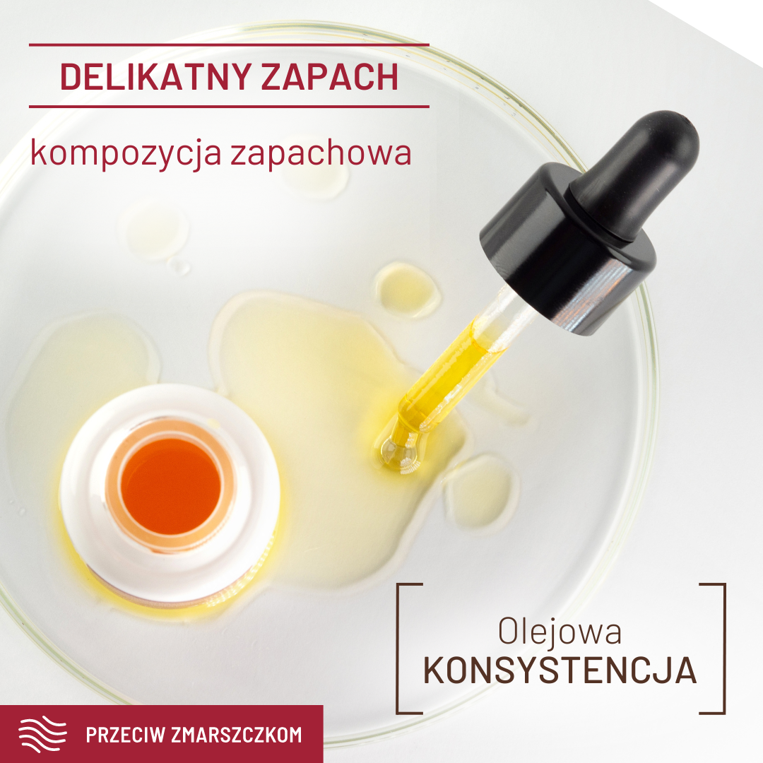 Innowacyjne serum przeznaczone dla osób z widocznymi efektami starzenia, takimi jak zmarszczki mimiczne, utrata jędrności i gęstości skóry. Zaawansowana formuła, bogata w skuteczne składniki przeciwstarzeniowe, pozwala osiągnąć efekt gładkiej, sprężystej, promiennej cery.