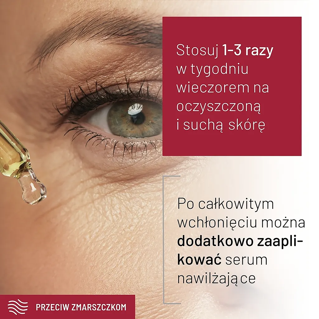 Stosuj 1-3 razy w tygodniu wieczorem na oczyszczoną i suchą skórę twarzy, szyi i dekoltu. Po całkowitym wchłonięciu można dodatkowo zaaplikować serum nawilżające. Nie stosuj serum, jeśli jesteś w ciąży. Używanie serum w okresie karmienia piersią skonsultuj z lekarzem prowadzącym. W trakcie kuracji retinoidami stosuj ochronę przeciwsłoneczną.