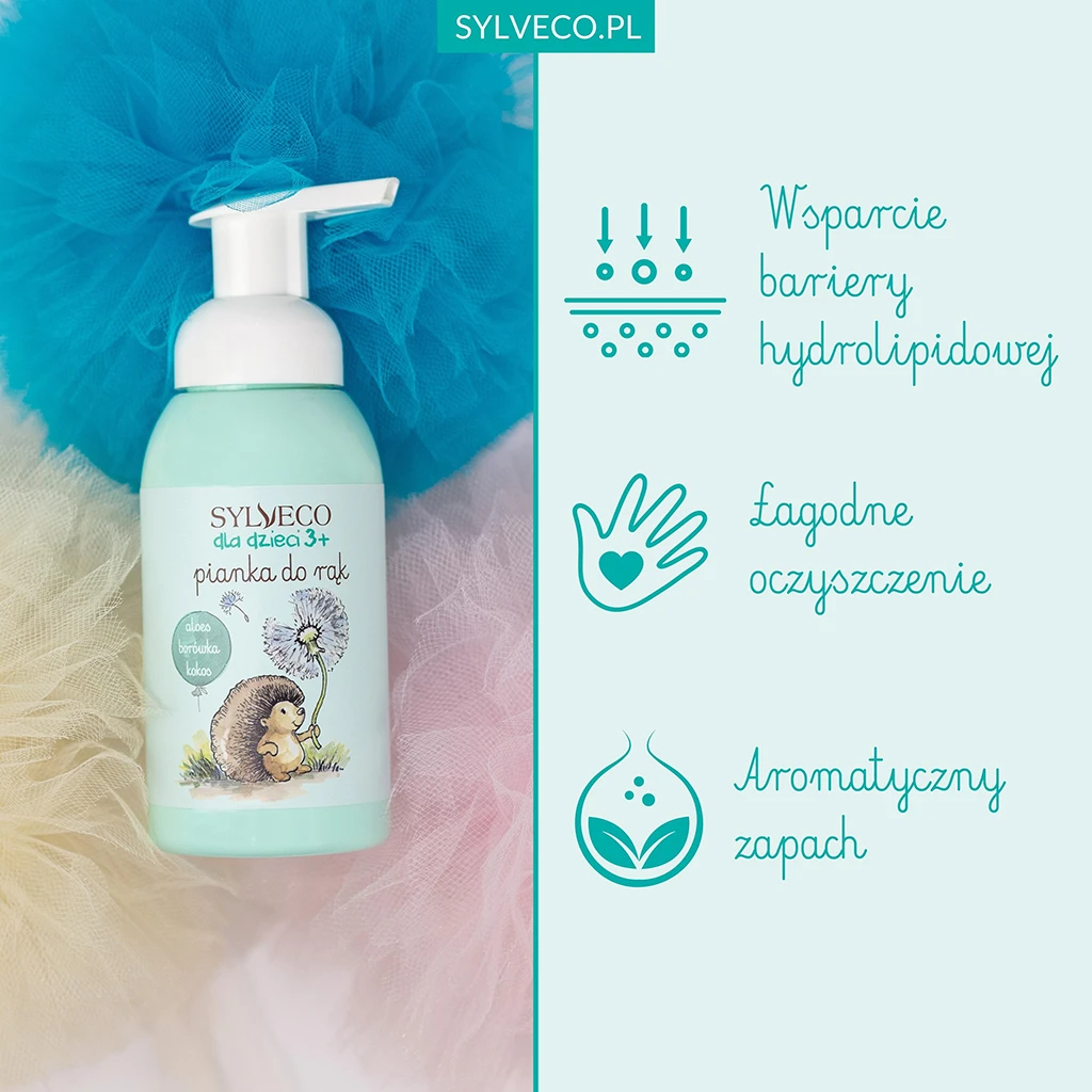 Twoje dziecko zasługuje na najlepszą troskę o skórę, dlatego stworzyliśmy delikatną Piankę do mycia rąk SYLVECO DLA DZIECI 3+ o zapachu borówki. Przeznaczona dla dzieci od 3 roku życia, zapewnia łagodne oczyszczenie i wsparcie dla delikatnej skóry rąk malucha