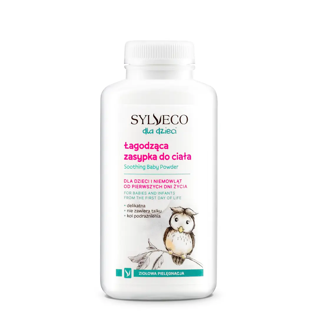 Łagodząca zasypka dla dzieci i niemowląt od pierwszych dni życia, również z AZS. Łagodzi podrażnienia, delikatne otarcia i zaczerwienienia. Sprawdza się również do łagodzącej kąpieli.