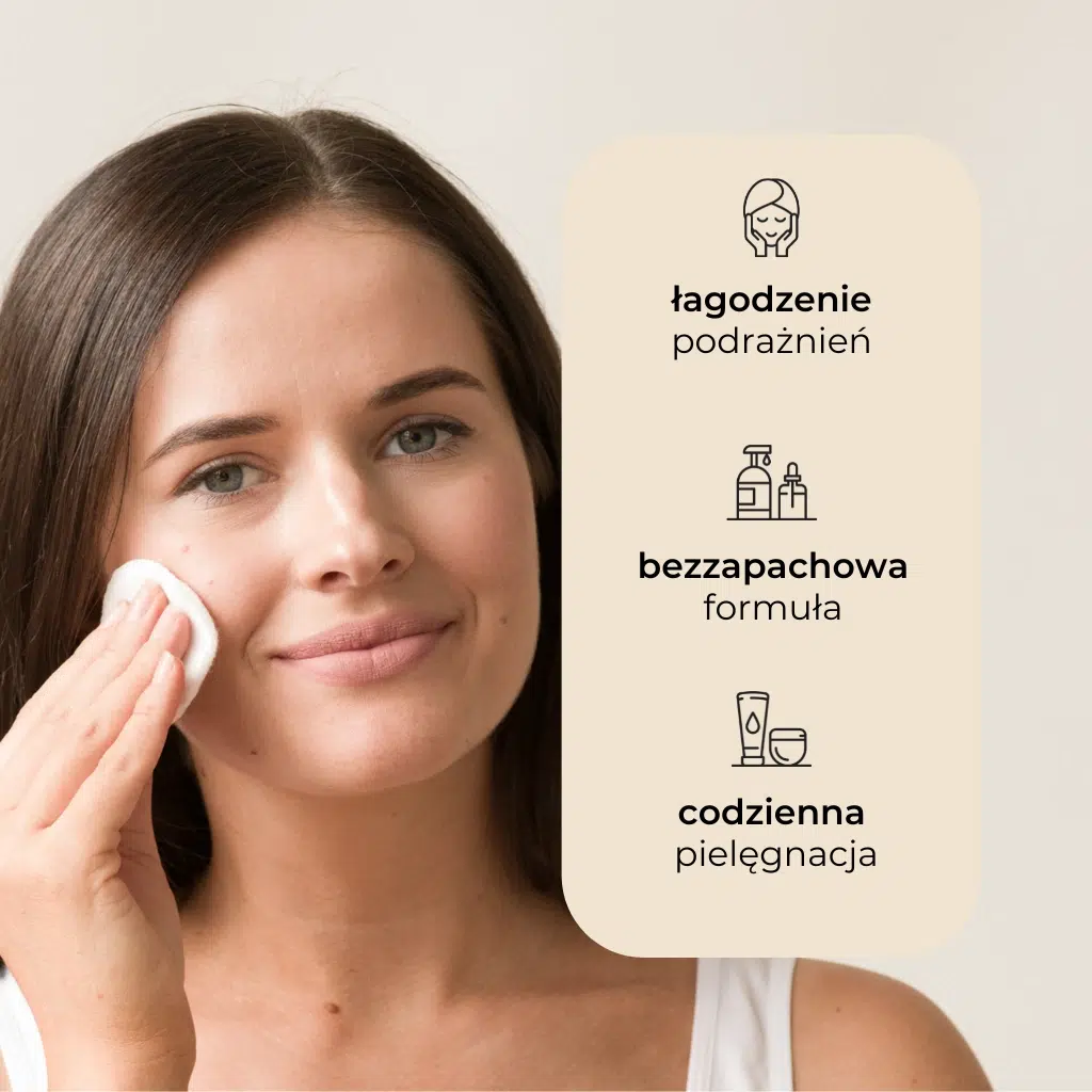 Z myślą o najbardziej wrażliwej i delikatnej skórze twarzy, tonik nie zawiera drażniących kompozycji zapachowych. Dzięki temu nie powoduje na twarzy uczucia pieczenia i ściągnięcia.