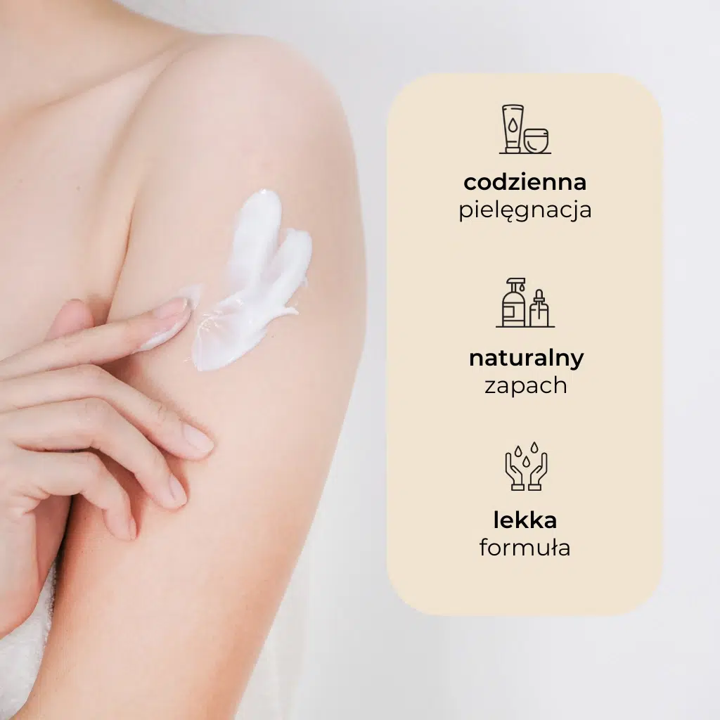 Wskazania: pielęgnacja przesuszonej i podrażnionej skóry ciała, po kąpieli, opalaniu, depilacji.
