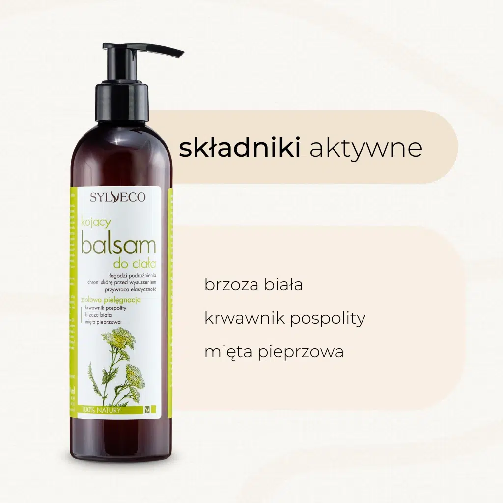 Balsam do ciała z ekstraktami z brzozy białej oraz krwawnika pospolitego przeznaczony do codziennej pielęgnacji skóry podrażnionej, wymagającej regeneracji i ukojenia. Regularne stosowanie sprawia, że odzyskuje ona właściwe, długotrwałe nawilżenie i równowagę, staje się bardziej odporna na działanie szkodliwych czynników. Specjalnie opracowana kompozycja składników pozwala odżywić skórę oraz przywrócić jej miękkość i elastyczność. Dzięki lekkiej, chłodzącej formule balsam doskonale się rozprowadza i wchłania, pozostawiając skórę gładką, nawilżoną i zrelaksowaną.