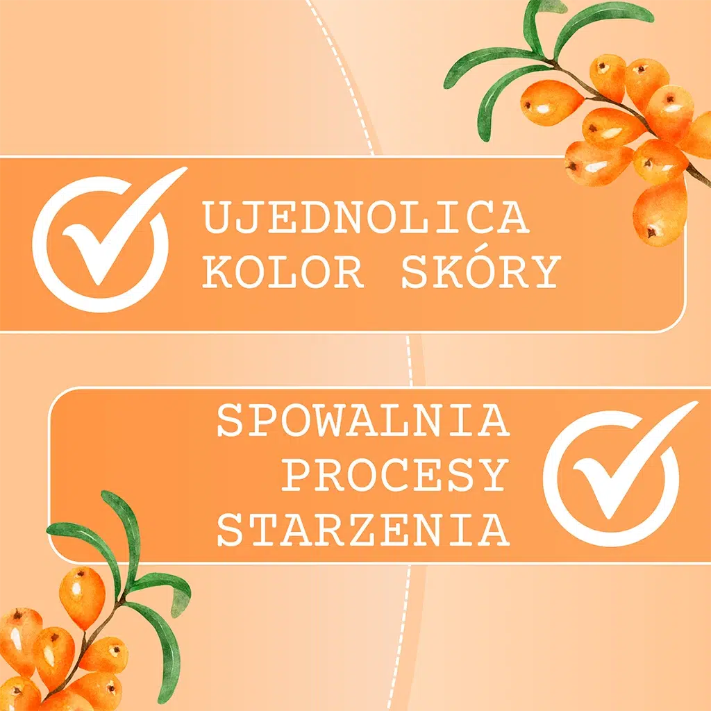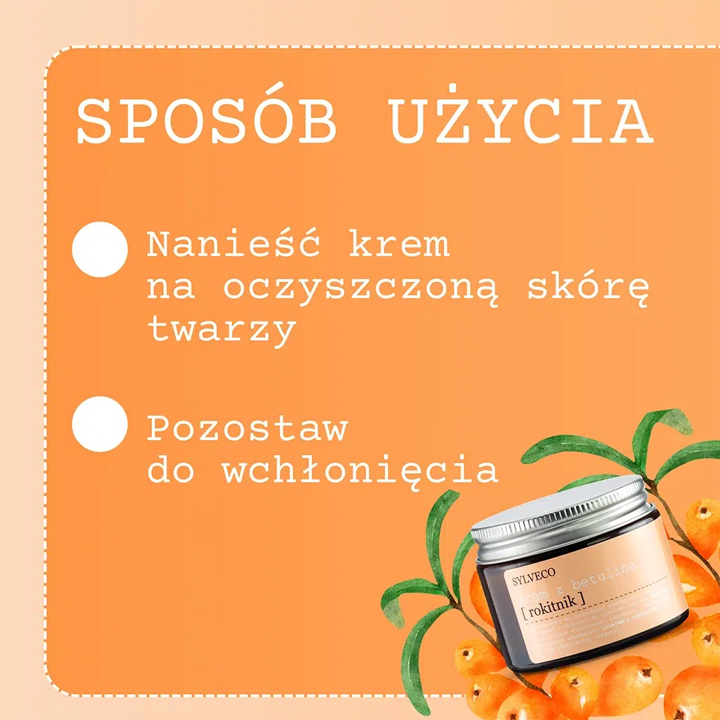 Olej z rokitnika, obecny w kremie, to odżywczy składnik poprawiający kondycję skóry. Spowalnia procesy starzenia, a jednocześnie wyrównuje koloryt, co skutkuje promiennym wyglądem cery. Aby uzyskać najlepsze efekty, polecamy połączyć pielęgnację z SYLVECO Kremem brzozowo-rokitnikowym z betuliną na noc.