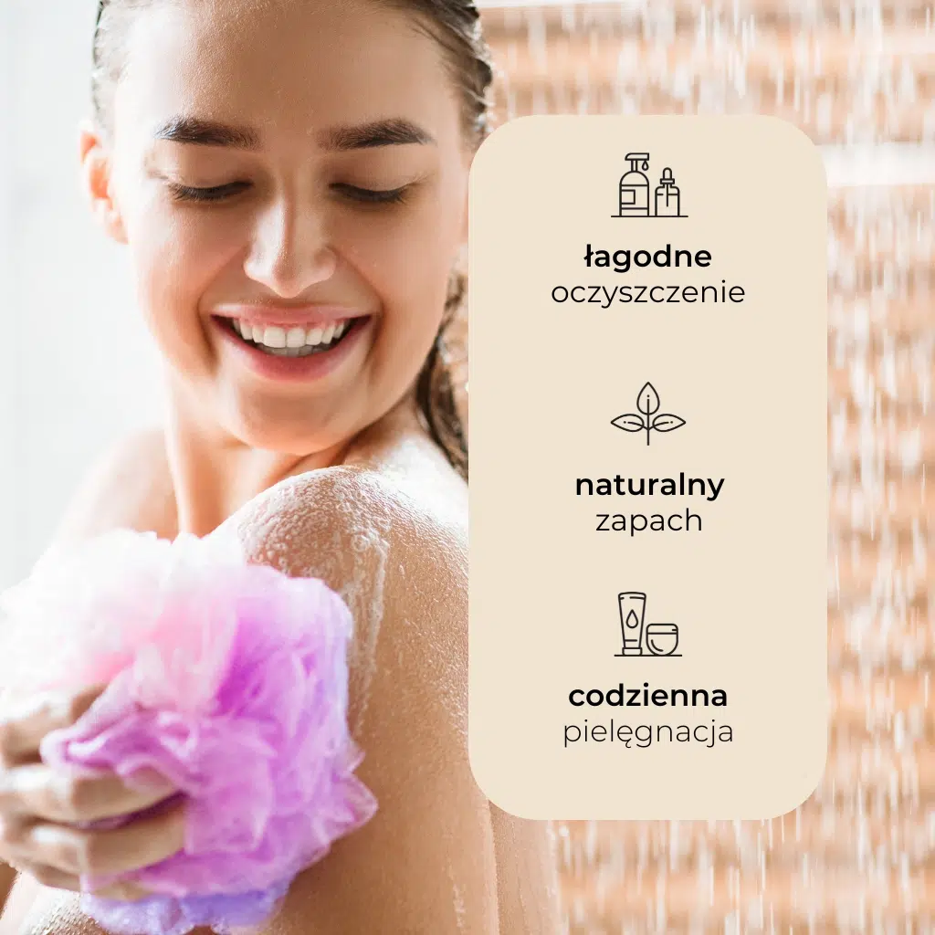 Naturalny, kremowy żel do mycia ciała z cytrusową nutą zapachową, pochodzącą od naturalnego olejku eterycznego z werbeny egzotycznej. Zawiera bardzo łagodne, ale jednocześnie skuteczne środki myjące, które nie podrażniają nawet najbardziej wrażliwej skóry. Żel posiada fizjologiczne pH, łatwo tworzy pianę, dokładnie oczyszczając skórę i ją odświeżając. W składzie znalazły się składniki o działaniu zmiękczającym i odbudowującym barierę lipidową, a ekstrakt z liści ruty zwyczajnej poprawia kondycję skóry skłonnej do zaczerwienienia. Codzienne stosowanie żelu pod prysznicem, czy w czasie kąpieli, wspomaga regenerację przesuszonej skóry, pozostawiając ją elastyczną i gładką.