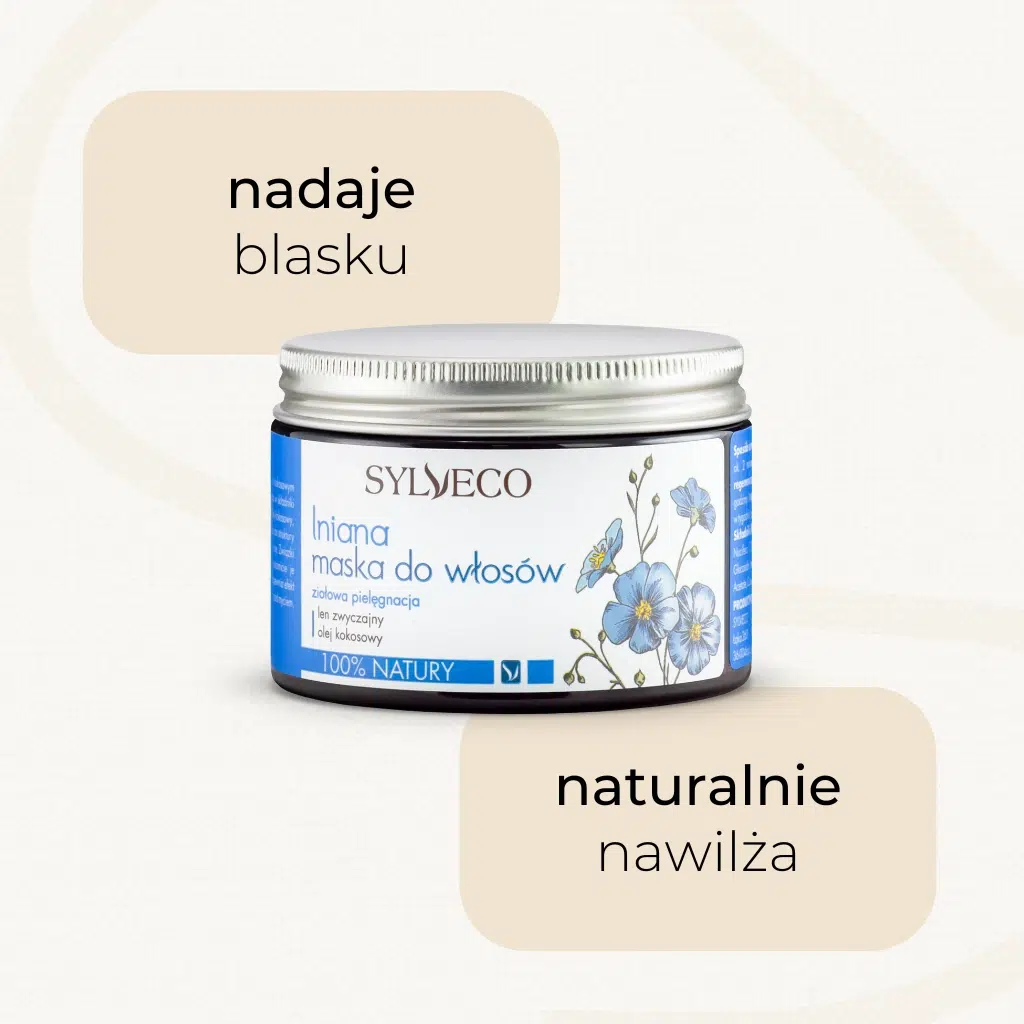 Związki śluzowe zawarte w nasionach lnu wygładzają i powlekają włosy, chroniąc je przed uszkodzeniami. Maska poprawia nawilżenie i zwiększa elastyczność włosów, pozostawiając je lśniące, gładkie i łatwe w rozczesywaniu.