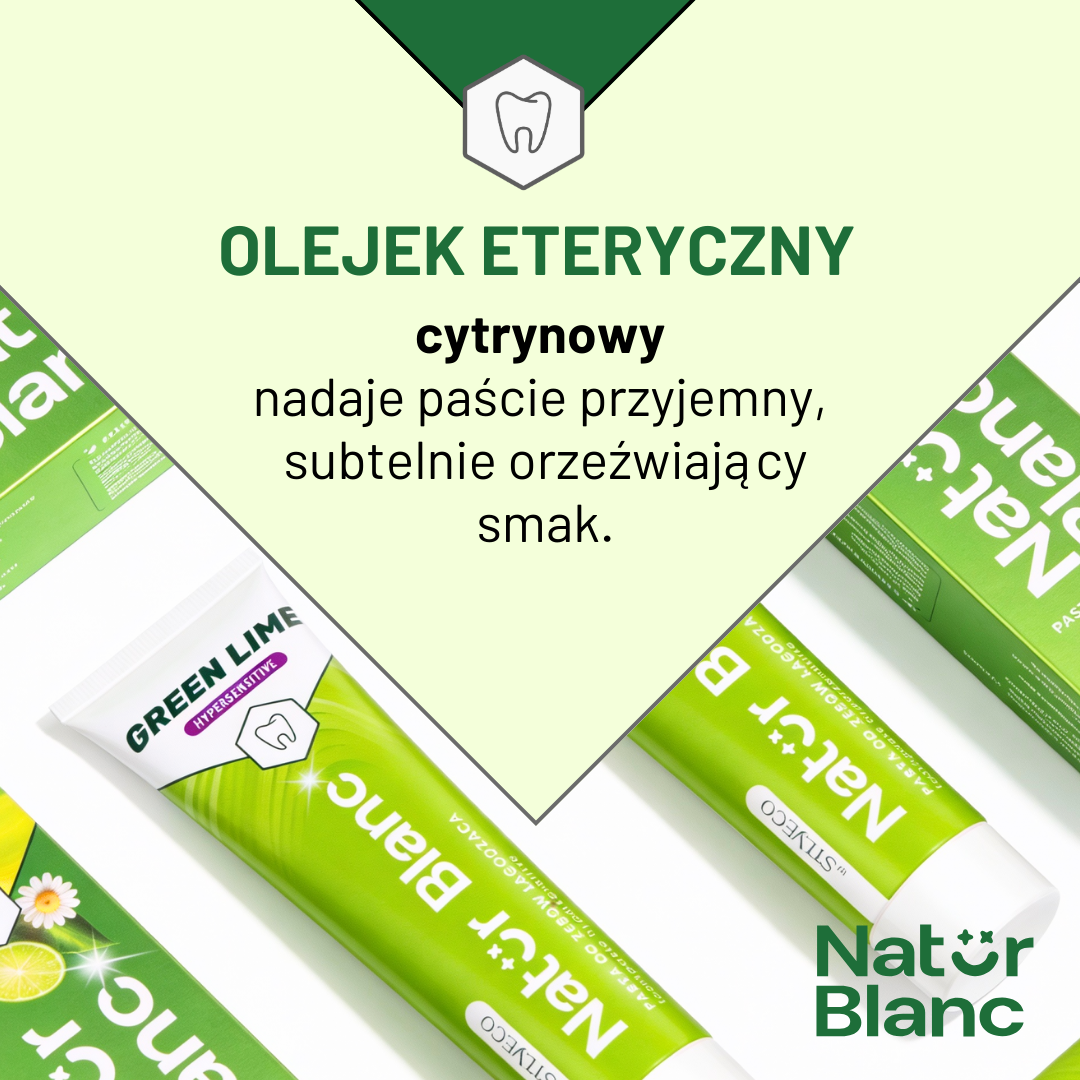 SYLVECO Natur Blanc GREEN LIME to idealny wybór dla tych, którzy potrzebują delikatnej, ale skutecznej pielęgnacji. Ciesz się komfortem i zdrowym uśmiechem każdego dnia!