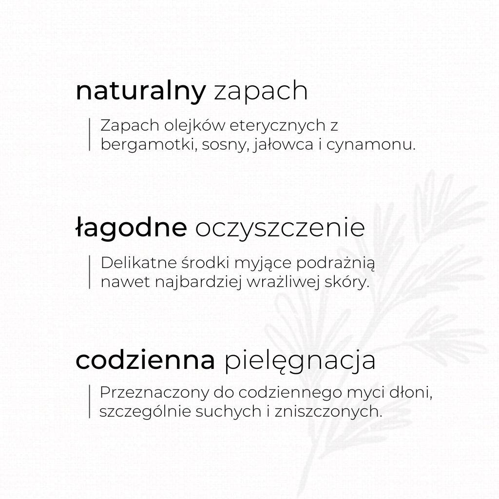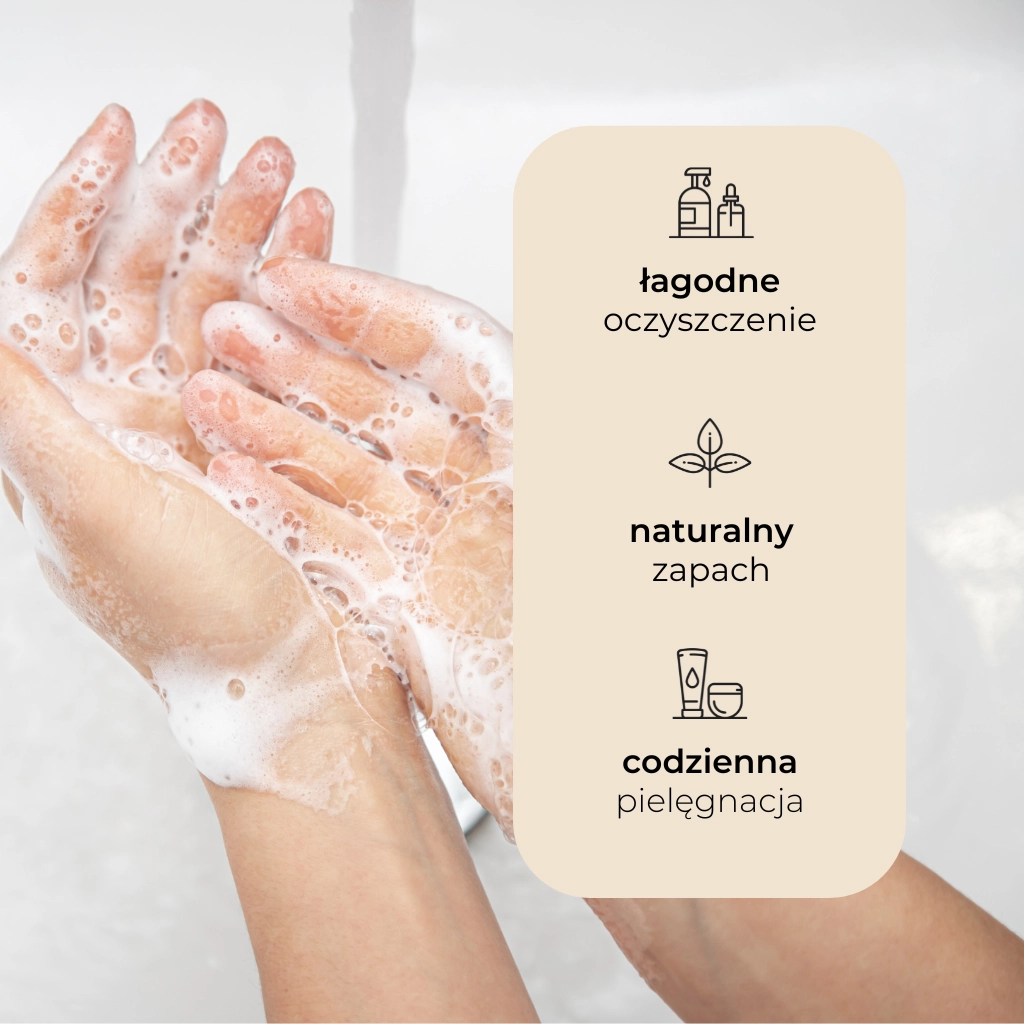 Naturalny, delikatny żel myjący, do codziennej pielęgnacji rąk. Zawiera bardzo łagodne detergenty, które skutecznie oczyszczają i nie podrażniają nawet najbardziej wrażliwej skóry. Ekstrakt z liści podbiału pospolitego posiada właściwości nawilżające i ochronne, przyspiesza regenerację skóry i łagodzi zaczerwienienia. Gliceryna, panthenol i mocznik przywracają skórze miękkość, gładkość i zapobiegają wysuszeniu. Żel posiada fizjologiczne pH, a dodatek naturalnych olejków eterycznych tonizuje i pozostawia na dłoniach uczucie pachnącej świeżości.