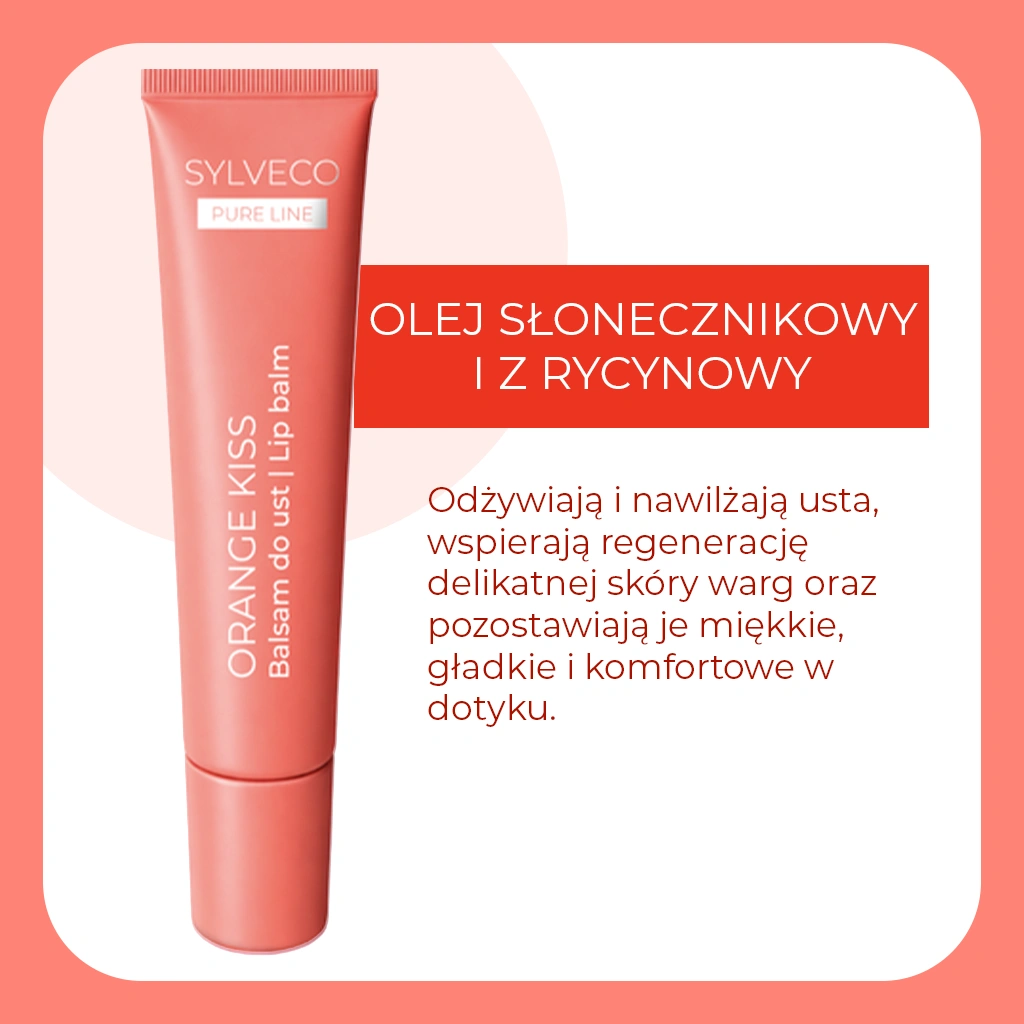 Balsam do ust ORANGE KISS zapewnia natychmiastową ulgę suchym i spierzchniętym ustom. Lanolina w połączeniu z olejem słonecznikowym i rycynowym skutecznie chroni delikatną skórę przed utratą wilgoci. Już po pierwszej aplikacji usta stają się wyraźnie bardziej miękkie i gładkie. To idealny wybór do codziennej pielęgnacji, szczególnie gdy usta potrzebują szybkiego nawilżenia i ochrony.