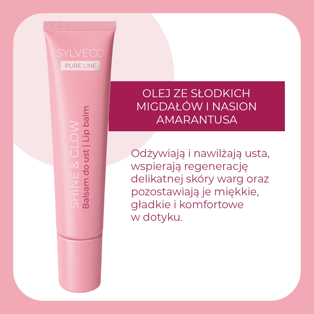 Balsam do ust SHINE and GLOW intensywnie pielęgnuje delikatną skórę ust, zapewniając jej długotrwały komfort. Lanolina w połączeniu z olejem słonecznikowym, arganowym i rycynowym skutecznie chroni usta przed przesuszeniem oraz pękaniem. Już po pierwszym użyciu usta stają się miękkie, gładkie i wyraźnie bardziej elastyczne. To codzienna ochrona, która sprawia, że usta wyglądają zdrowo i są przyjemne w dotyku.