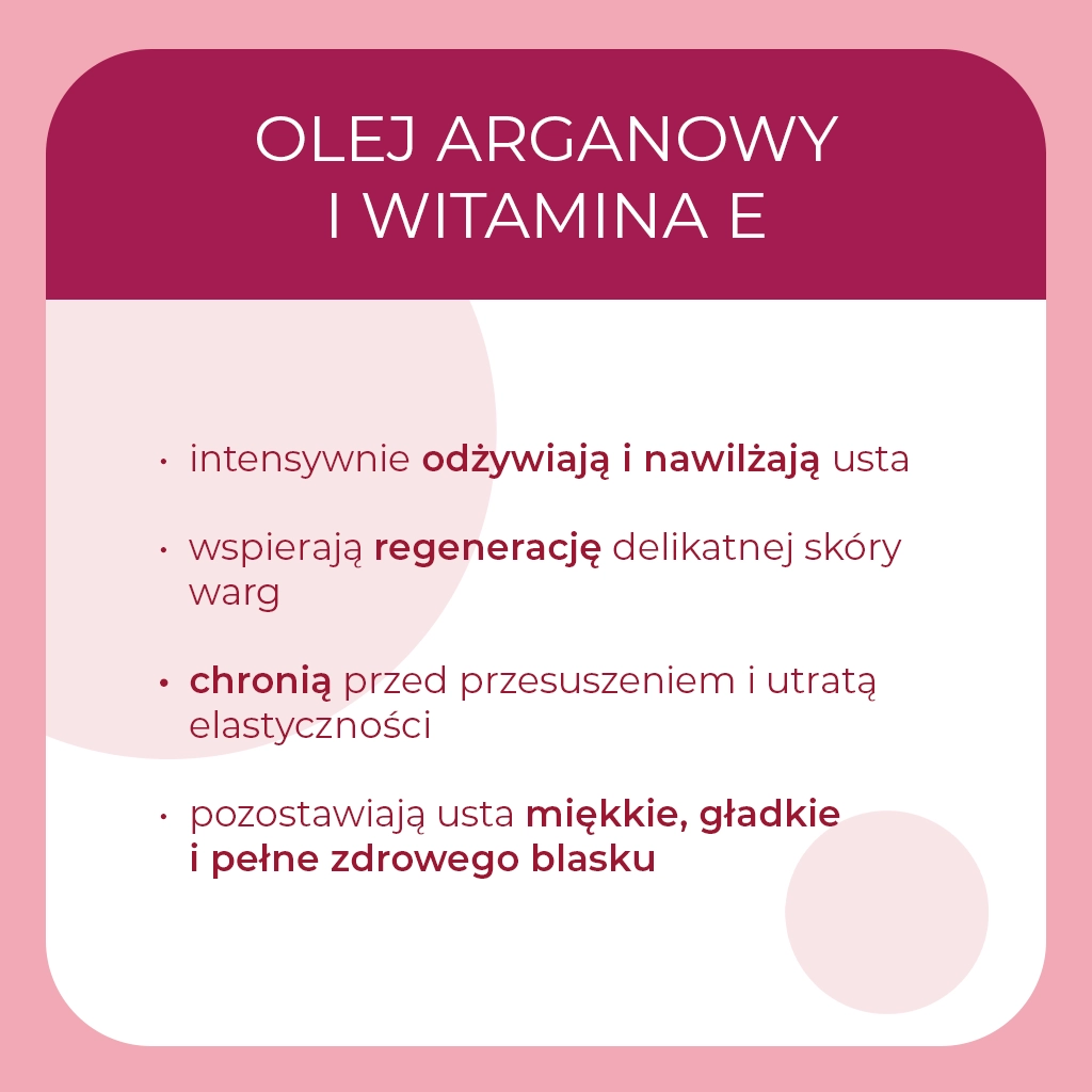Olej z nasion amarantusa oraz witamina E wspierają naturalne procesy regeneracyjne skóry ust. Składniki te pomagają odbudować barierę ochronną i zabezpieczają usta przed działaniem czynników zewnętrznych. Regularne stosowanie balsamu sprawia, że usta są mniej podatne na wysuszenie i podrażnienia. To idealny wybór dla osób, które oczekują nie tylko efektu wizualnego, ale także realnej pielęgnacji.