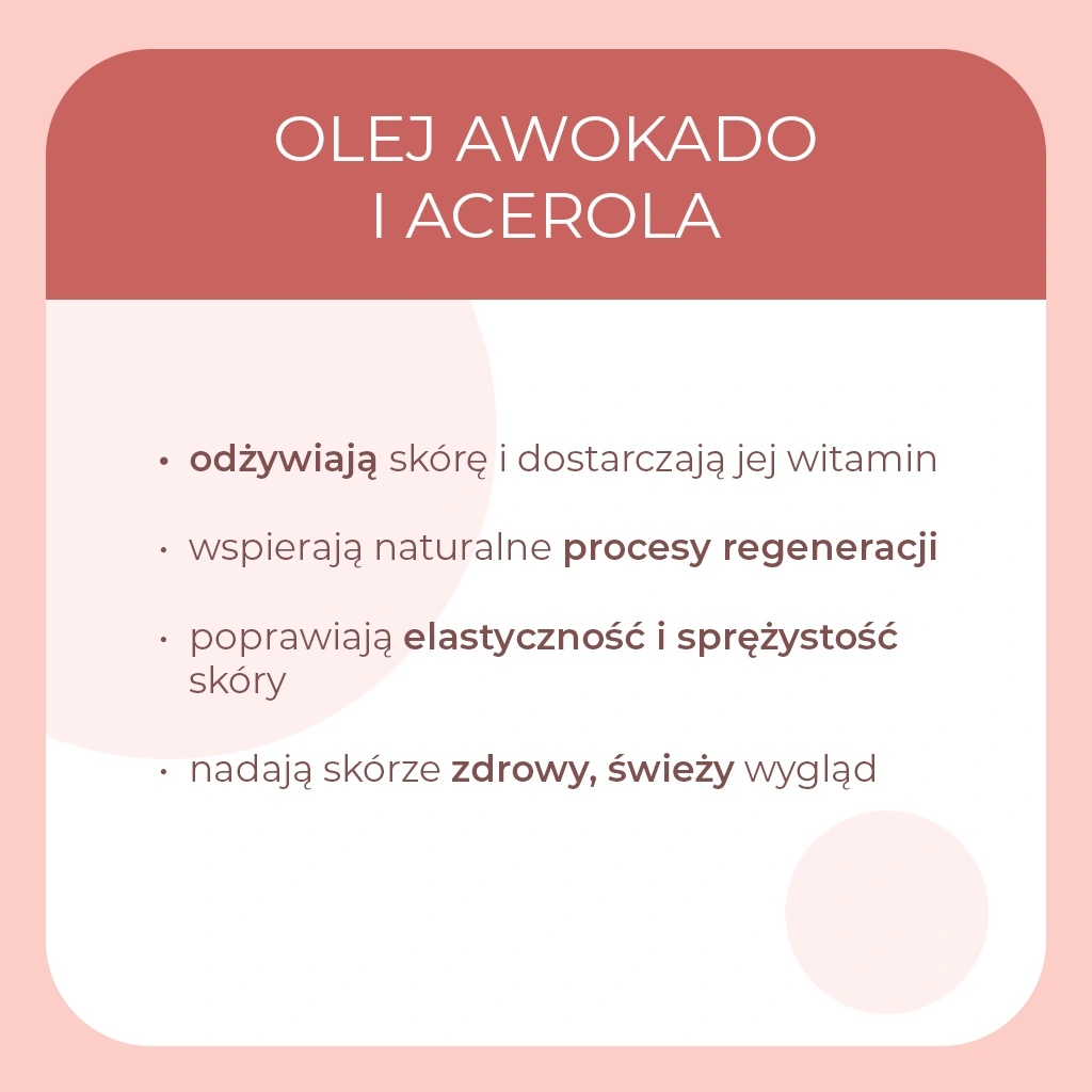 | Składniki wiodące | Acerola, Aloes, Olej awocado, Witamina E |