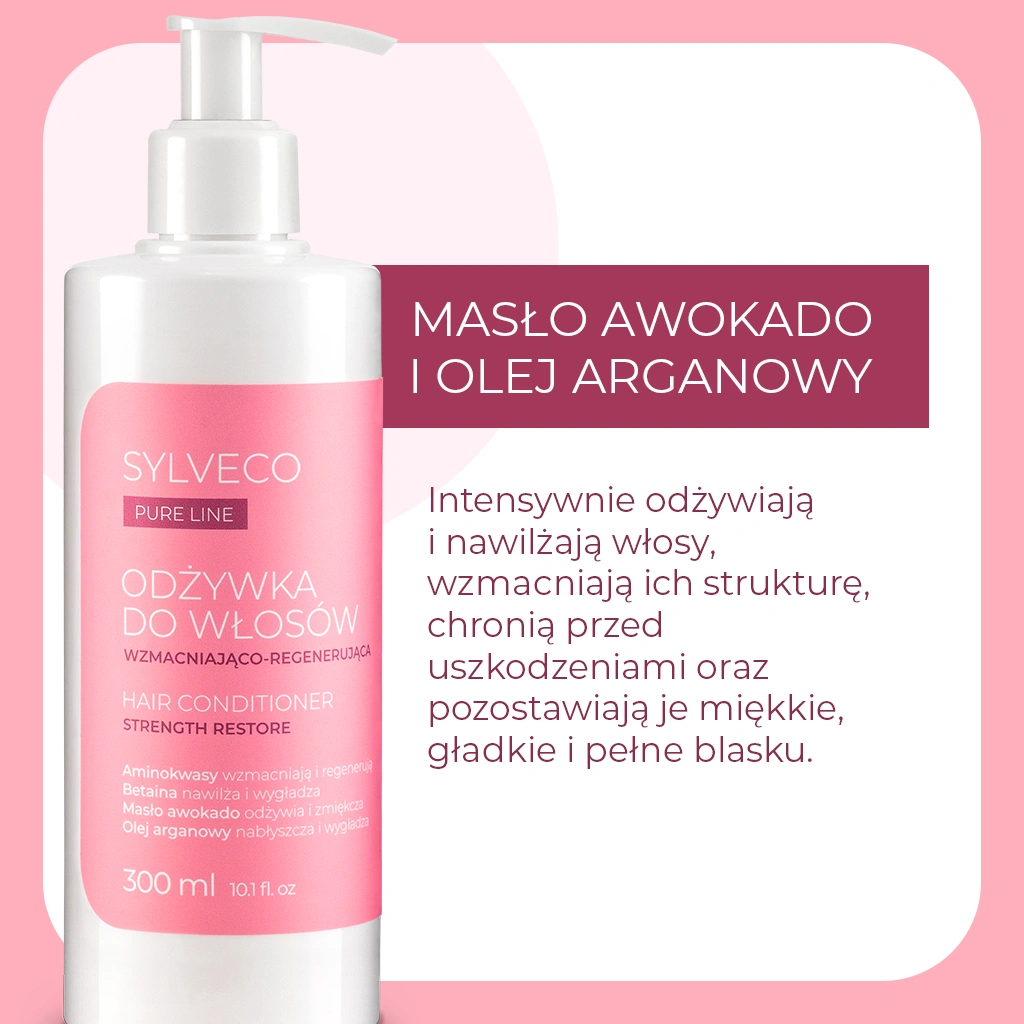 Odżywka została stworzona z myślą o włosach, które potrzebują wyraźnego wzmocnienia i regeneracji. Bogata baza emolientów oraz olej arganowy i olej z awokado intensywnie odżywiają włosy, przywracając im miękkość i elastyczność. Pasma stają się bardziej sprężyste i mniej podatne na łamanie. Już po pierwszym użyciu włosy wyglądają na zdrowsze i wyraźnie lepiej zadbane. To idealny krok po myciu, który realnie poprawia kondycję włosów.