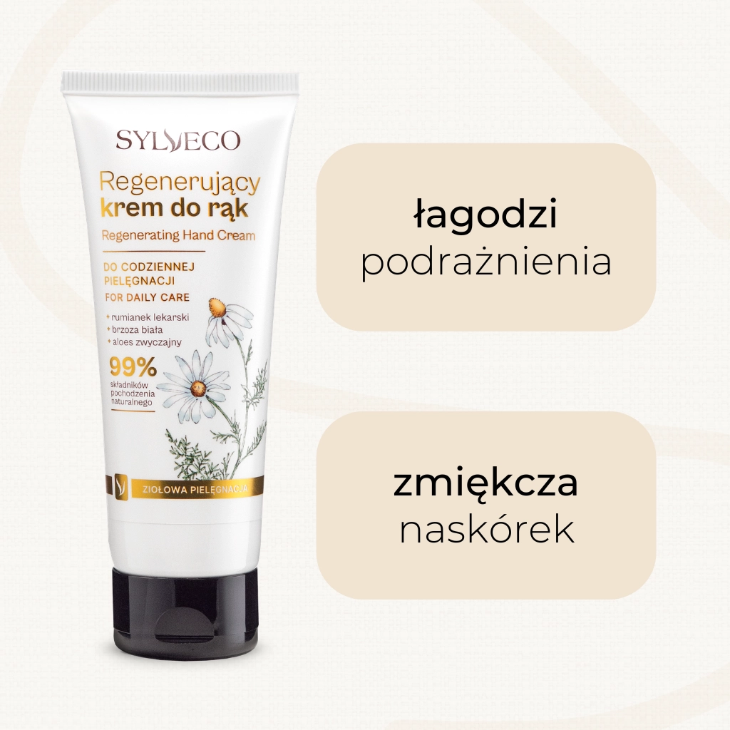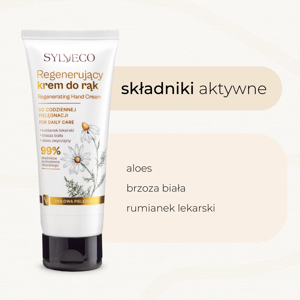 Naturalny krem regenerujący do rąk, stworzony wyłącznie z naturalnych składników, jest idealny do codziennej pielęgnacji skóry suchej i zniszczonej. Zapewnia intensywne nawilżenie i odżywienie, przywracając dłoniom gładkość, elastyczność i miękkość. Formuła kremu opiera się na roślinnych ekstraktach z rumianku, brzozy oraz aloesu, które oferują ochronę, działają łagodząco oraz wspierają naturalne procesy regeneracji skóry.
