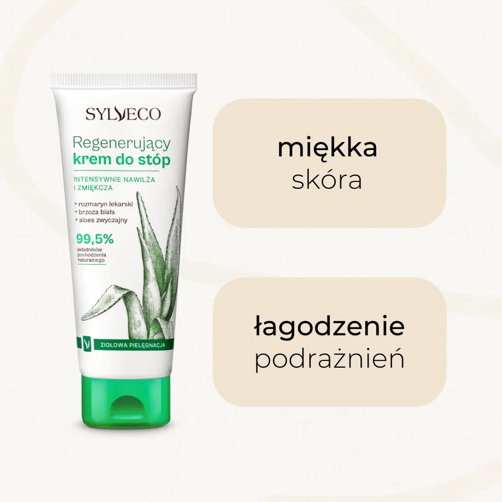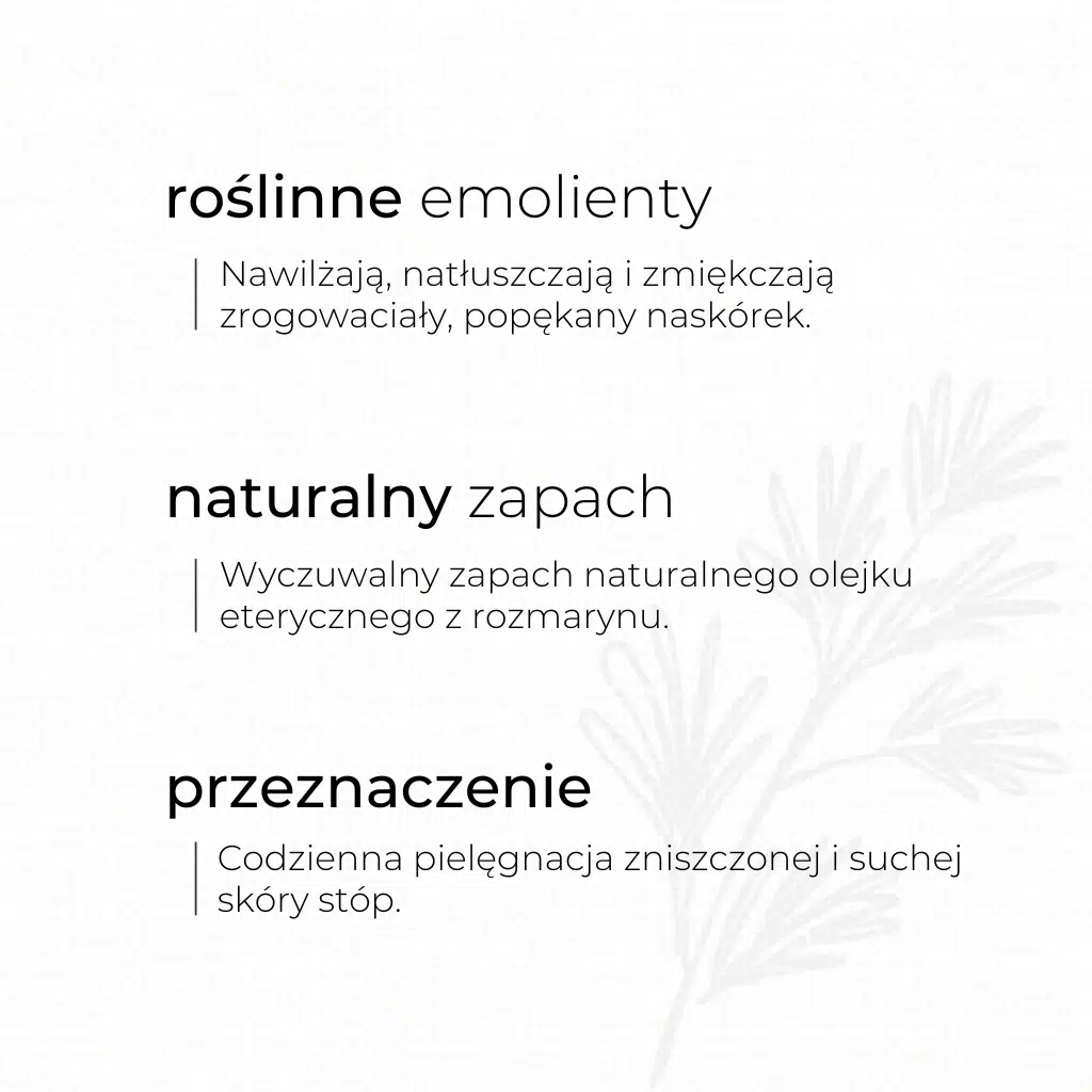 Łagodzi i regeneruje skórę stóp