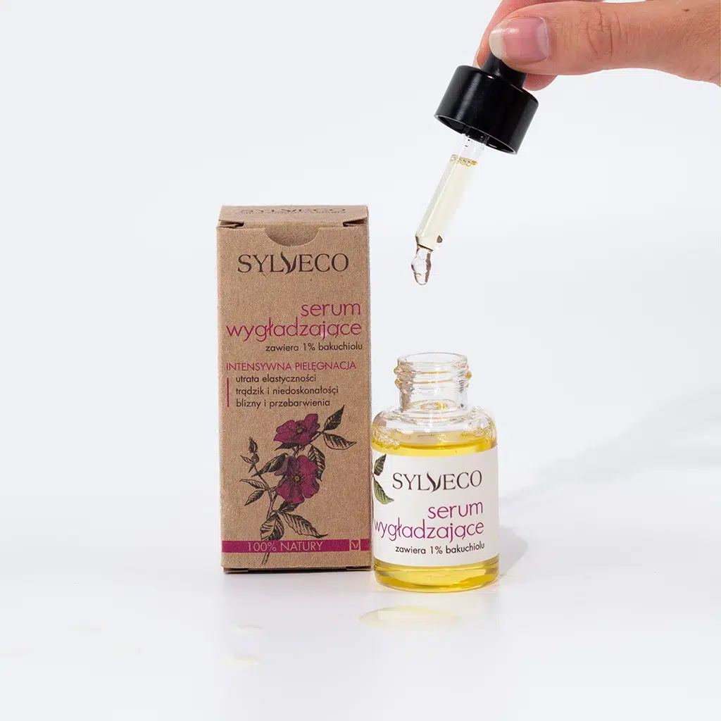 Serum wygładzające intensywnie nawilża i odżywia skórę. Swoje wyjątkowe działanie zawdzięcza zawartości bakuchiolu, który jest nazywany botanicznym retinolem. Poprawia jędrność i napięcie skóry, spłyca zmarszczki, wyrównuje koloryt, niweluje przebarwienia, redukuje wypryski i inne niedoskonałości. Może być stosowany nawet w letnie dni (nie powoduje podrażnień), nie wykazuje negatywnych skutków podczas stosowania. Serum jest odpowiednie dla każdego typu skóry, w szczególności cery wymagającej regeneracji i wrażliwej. Serum zawiera także wyjątkowe oleje o działaniu przeciwzmarszczkowym: z owoców dzikiej róży, z nasion pietruszki czy arganowy.
