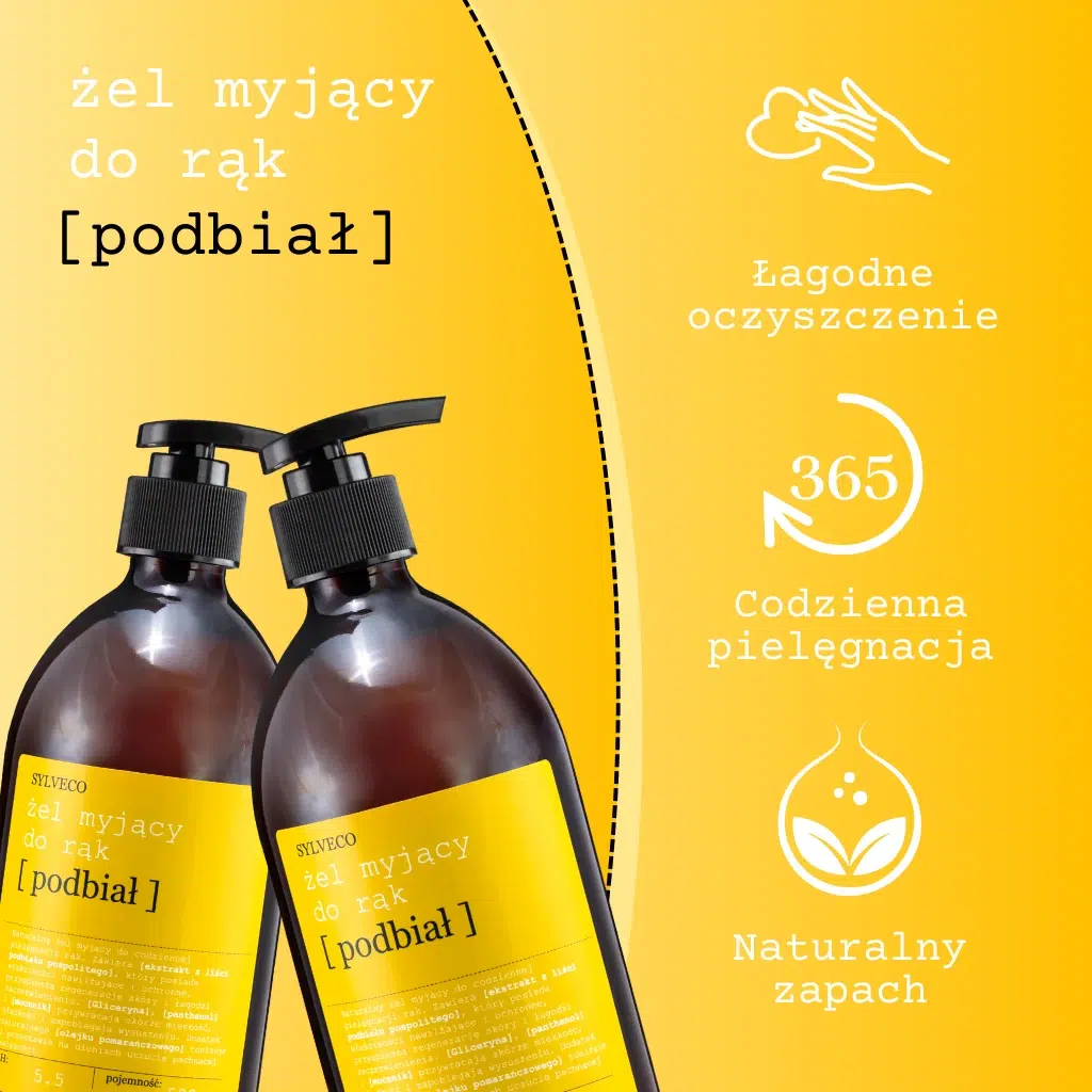 SYLVECO Nawilżający żel do mycia rąk podbiał posiada doskonały, sprawdzony skład INCI, ten sam który można odnaleźć w SYLVECO Nawilżającym żelu do mycia rąk