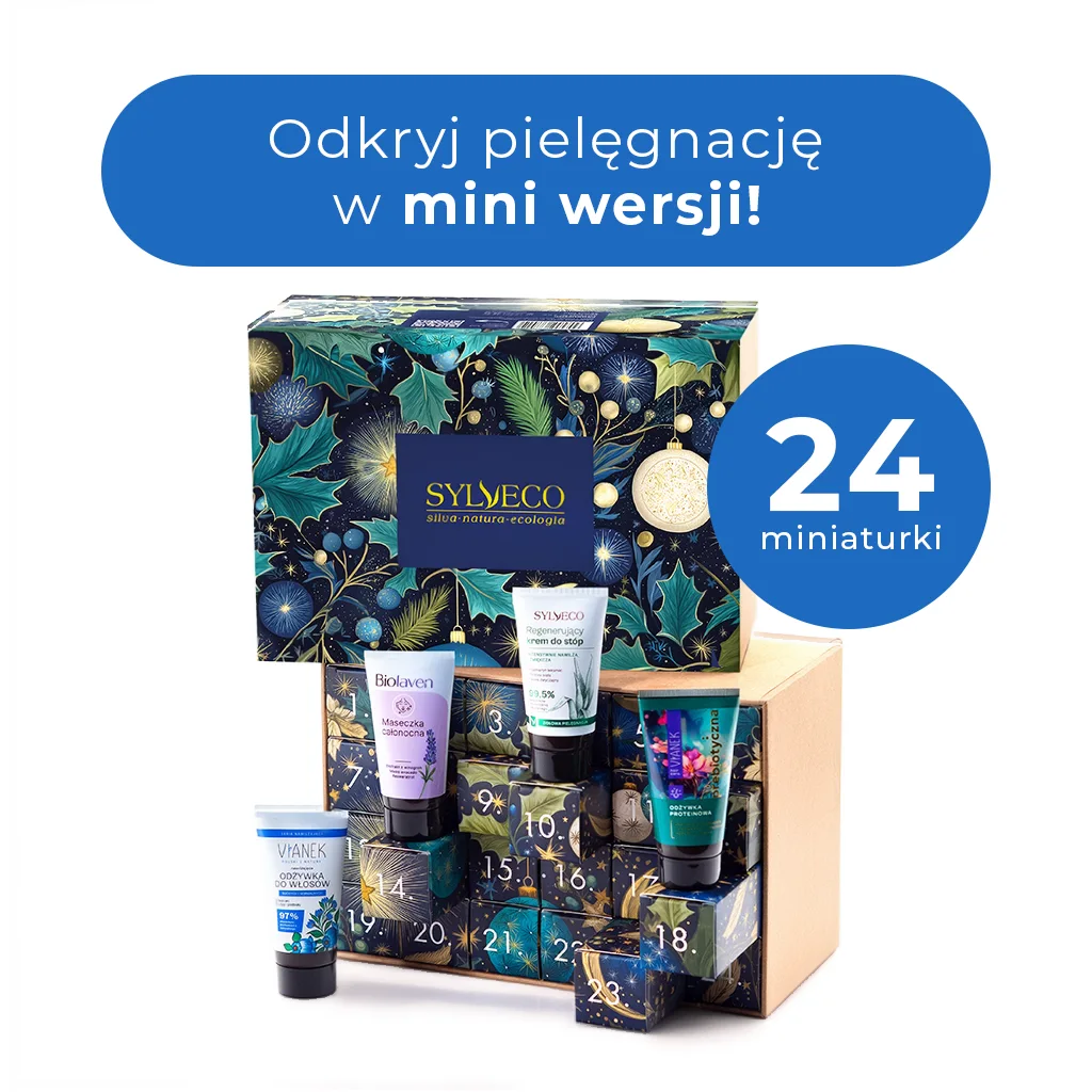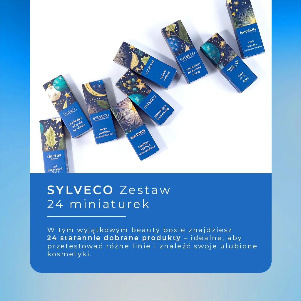Zestaw zawiera 24 mini produkty obejmujące pielęgnację twarzy, ciała oraz włosów. To przemyślana selekcja kosmetyków, która pozwala odkryć różne linie i składniki aktywne charakterystyczne dla marek Sylveco. Dzięki temu możesz sprawdzić, jak Twoja skóra reaguje na konkretne formuły i świadomie wybrać produkty najlepiej dopasowane do swoich potrzeb.