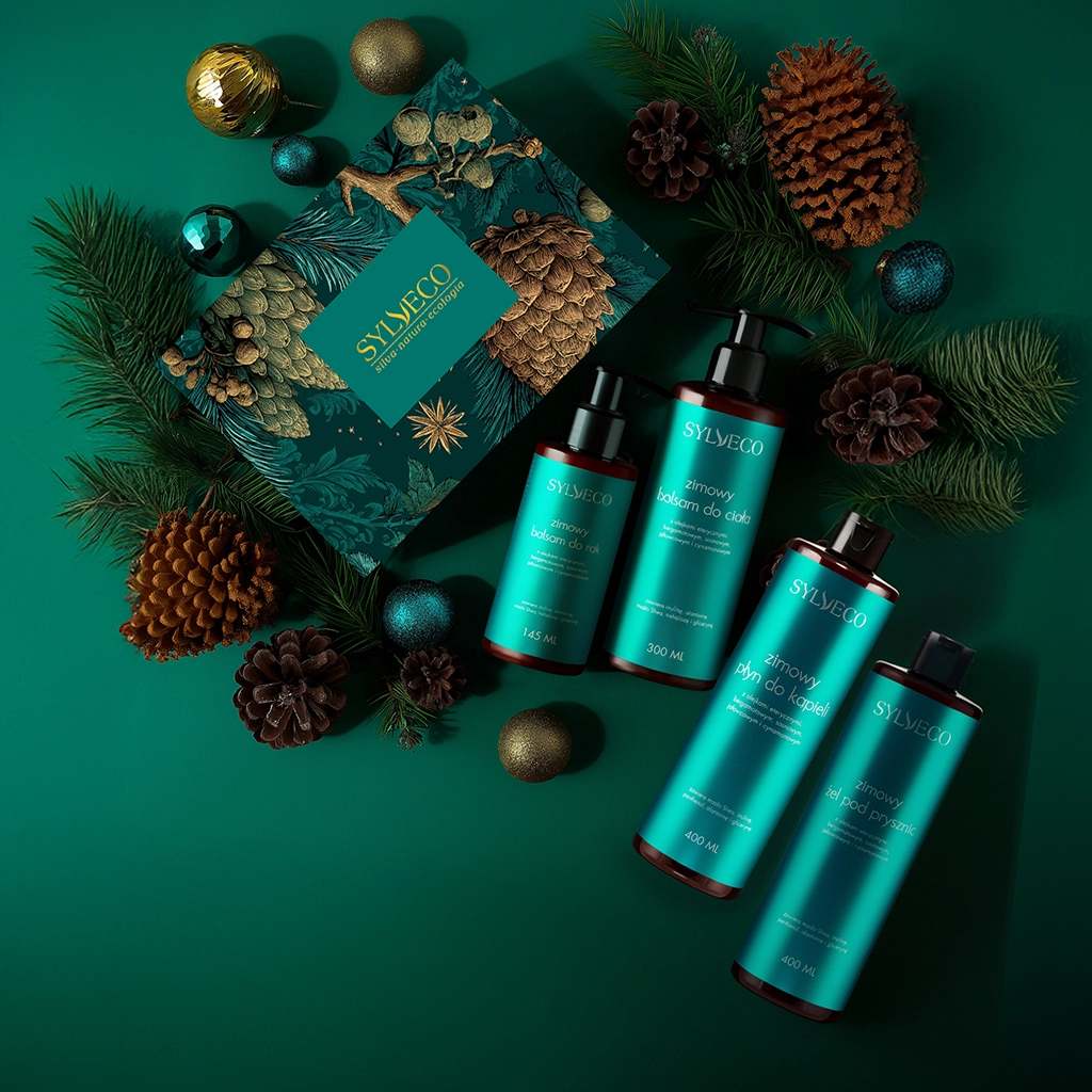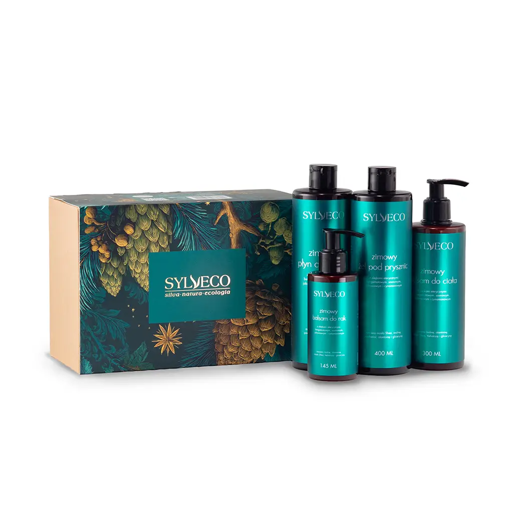 Zanurz się w świąteczny klimat z zimowym zestawem pielęgnacyjnym SYLVECO o zapachu świątecznej choinki. W skład zestawu wchodzą: zimowy balsam do rąk, aromatyczny płyn do kąpieli, odświeżający żel pod prysznic oraz otulający balsam do ciała. Połączenie masła Shea, trehalozy, inuliny, panthenolu, alantoiny i gliceryny dba o skórę na każdym etapie pielęgnacji, a kompozycja olejków eterycznych: bergamotowego, sosnowego, jałowcowego i cynamonowego tworzy ciepły, korzenny aromat kojarzący się z choinką i zimowymi wieczorami.