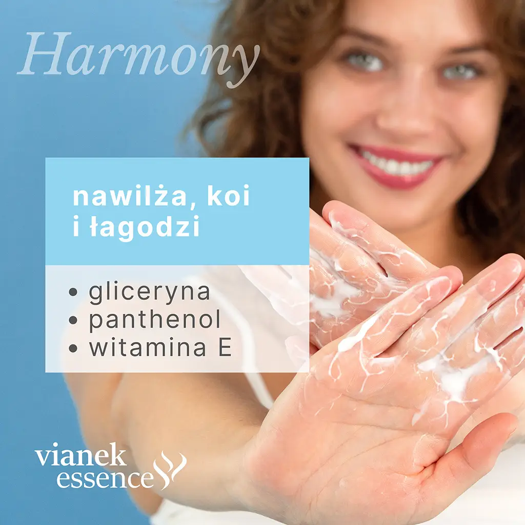 Krem do rąk z serii Harmony skutecznie pielęgnuje skórę dłoni, zapewniając jej odpowiednie nawilżenie i elastyczność. Formuła z gliceryną, witaminą E i pantenolem regeneruje, nawilża oraz wspiera odbudowę naturalnej bariery hydrolipidowej. Całość dopełnia elegancki zapach, w którym świeże cytrusy harmonijnie łączą się z białymi kwiatami i wanilią.