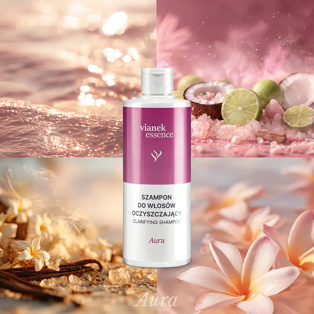 Szampon do włosów Aura został opracowany z myślą o codziennej pielęgnacji wszystkich rodzajów włosów, w szczególności tych ze skłonnością do przetłuszczania. Jego lekka, odświeżająca formuła skutecznie oczyszcza skórę głowy i włosy, zapewniając im długotrwałe uczucie świeżości oraz naturalnej lekkości. Regularne stosowanie przywraca włosom zdrowy wygląd, miękkość i blask, sprawiając, że stają się pełne energii i witalności.