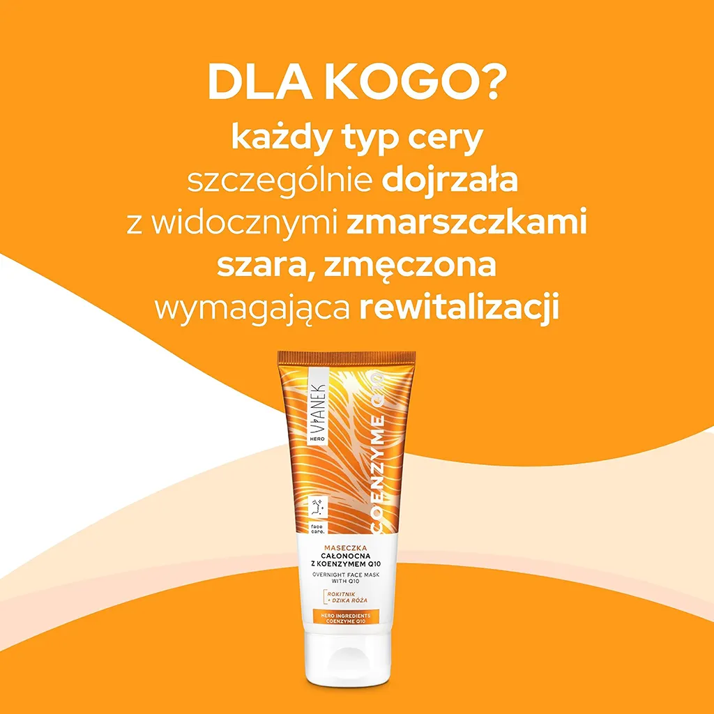 Maseczka idealnie sprawdzi się jako ostatni krok wieczornej pielęgnacji. Wystarczy nałożyć cienką warstwę na oczyszczoną skórę twarzy i szyi, pozostawić na całą noc i rano spłukać letnią wodą, a resztę… zrobią nasi super hero! Obudź się z nawilżoną, odżywioną i pełną blasku skórą – zaufaj regeneracyjnej mocy koenzymu Q10!