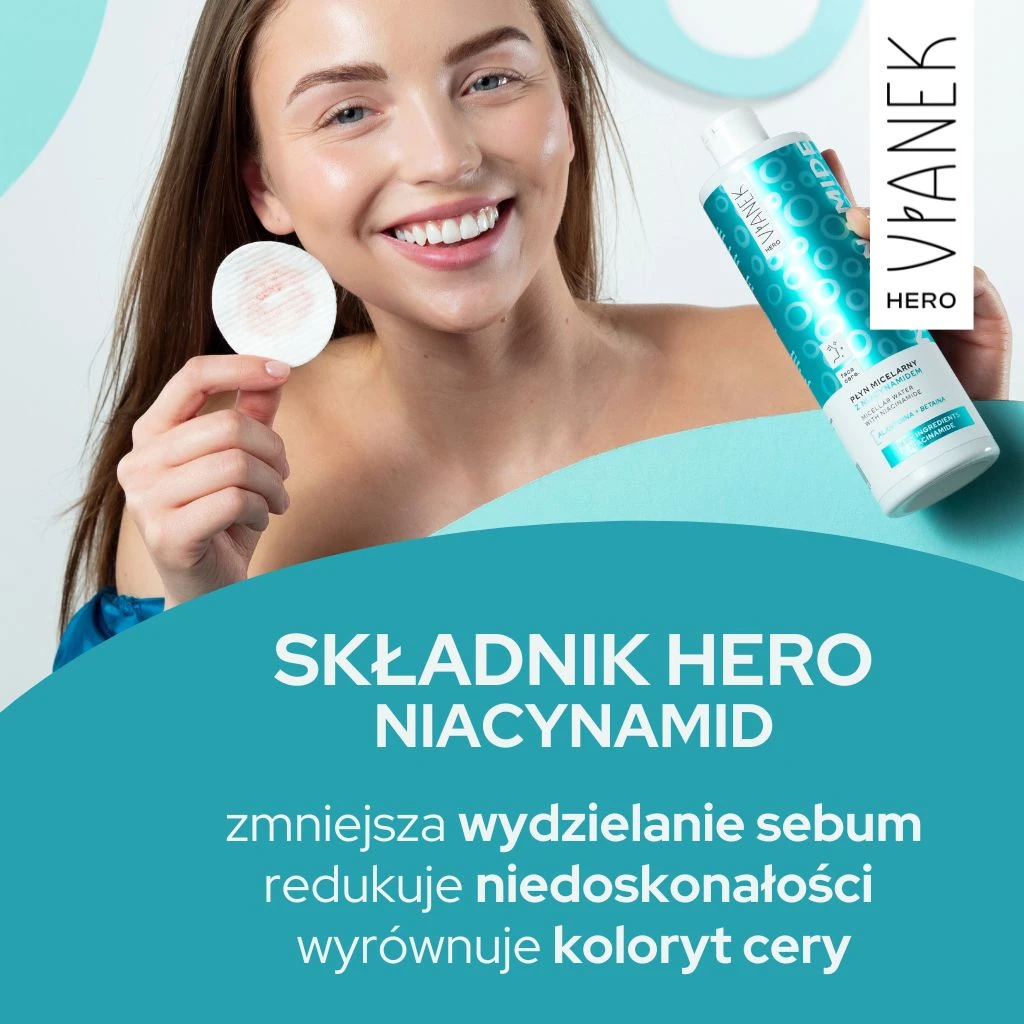 Płyn micelarny z niacynamidem to idealny sposób na skuteczne usunięcie makijażu i zanieczyszczeń, jednocześnie dbając o równowagę skóry. Jego lekka formuła oczyszcza bez naruszania bariery hydrolipidowej, pozostawiając skórę świeżą, miękką i promienną.